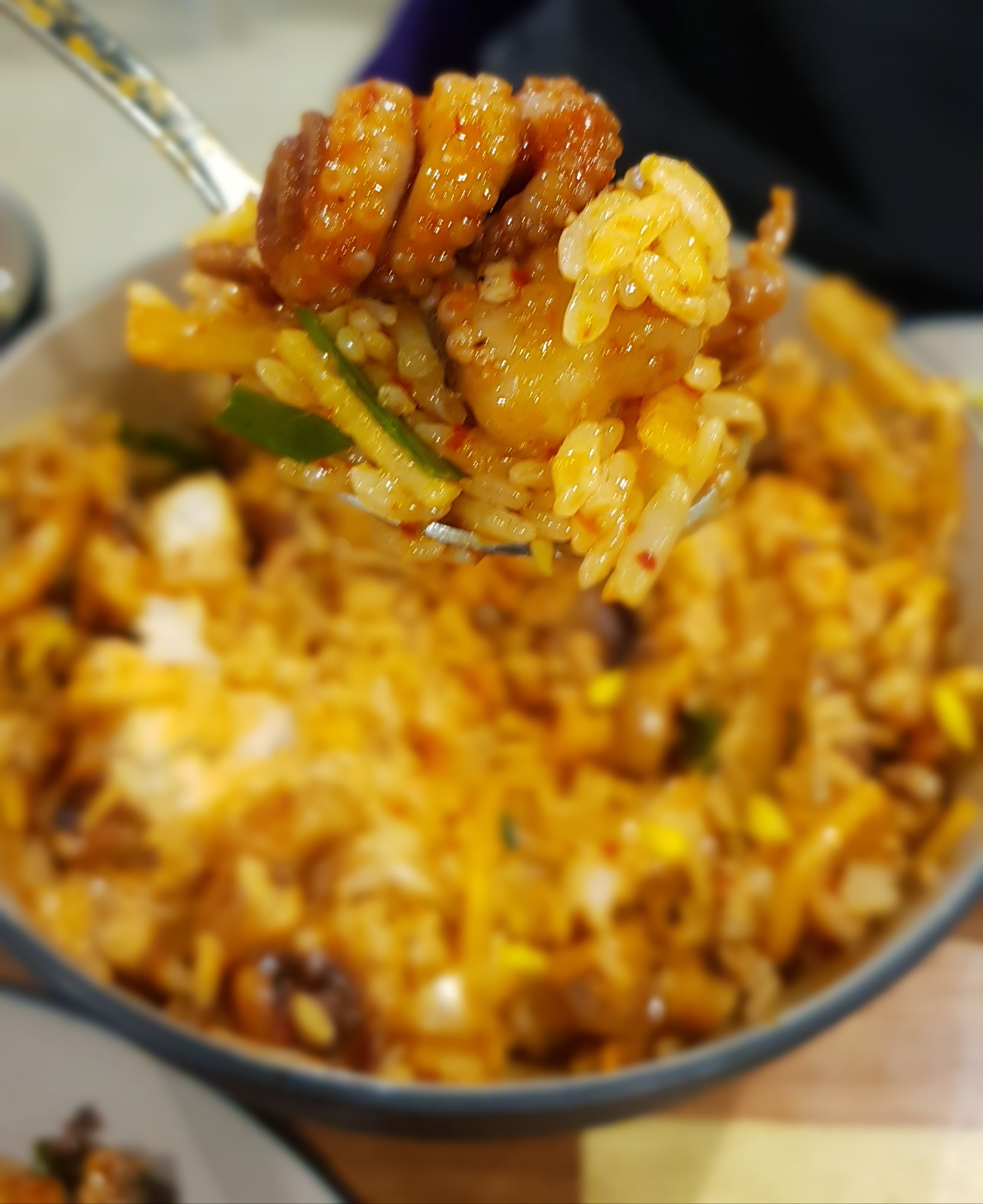 드디어 쭈꾸미가 나왔어요.불향이 제대론 게 밥 비벼 먹으면 완전 짱짱맛이에요😋