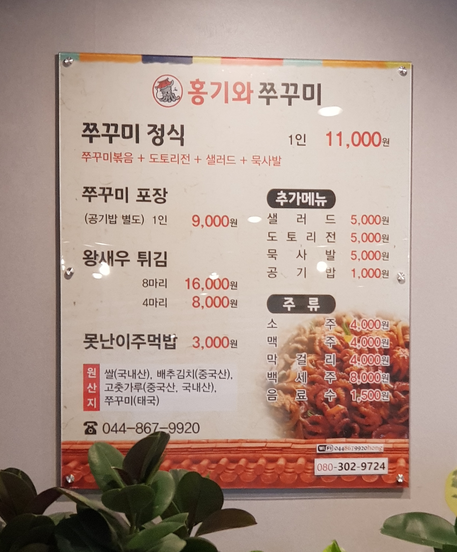 지금까지 세종시 장군면 홍기와쭈꾸미 방문 후기였습니다🤗