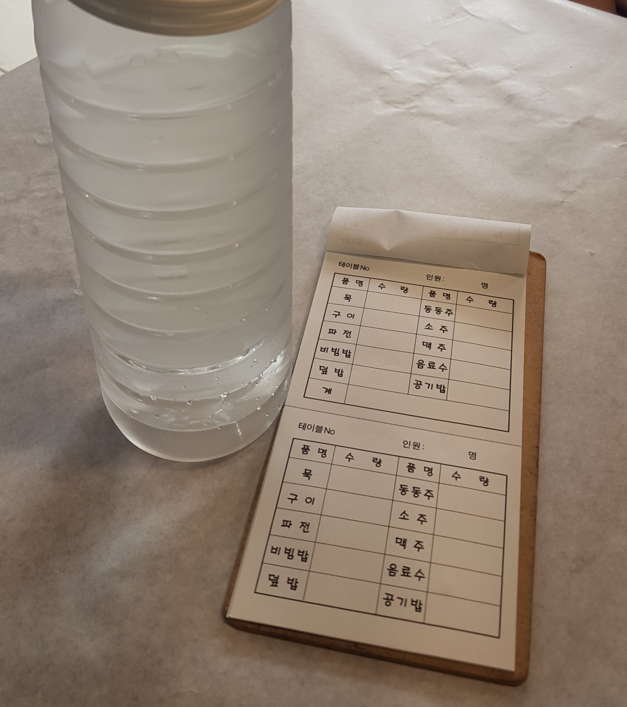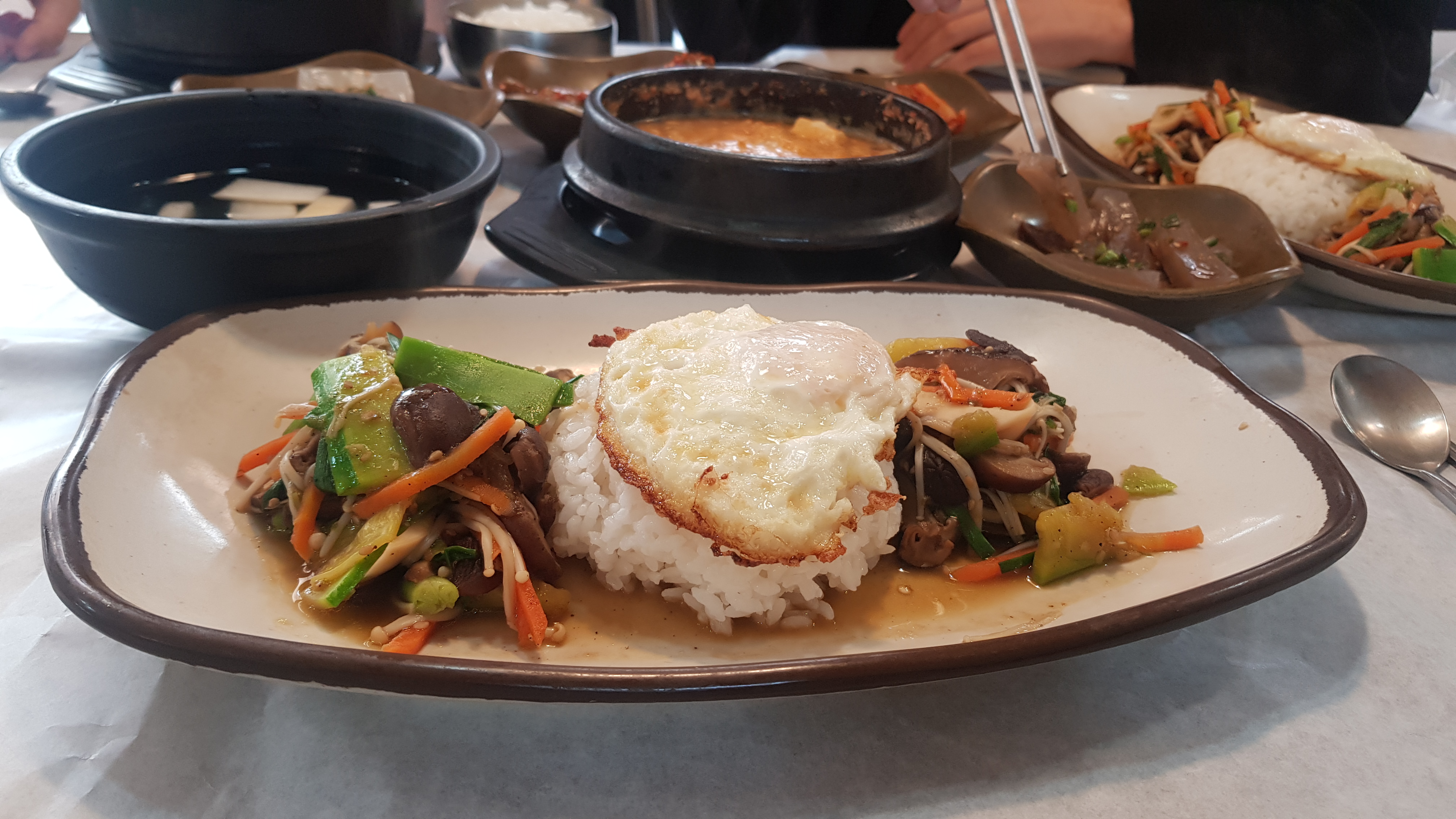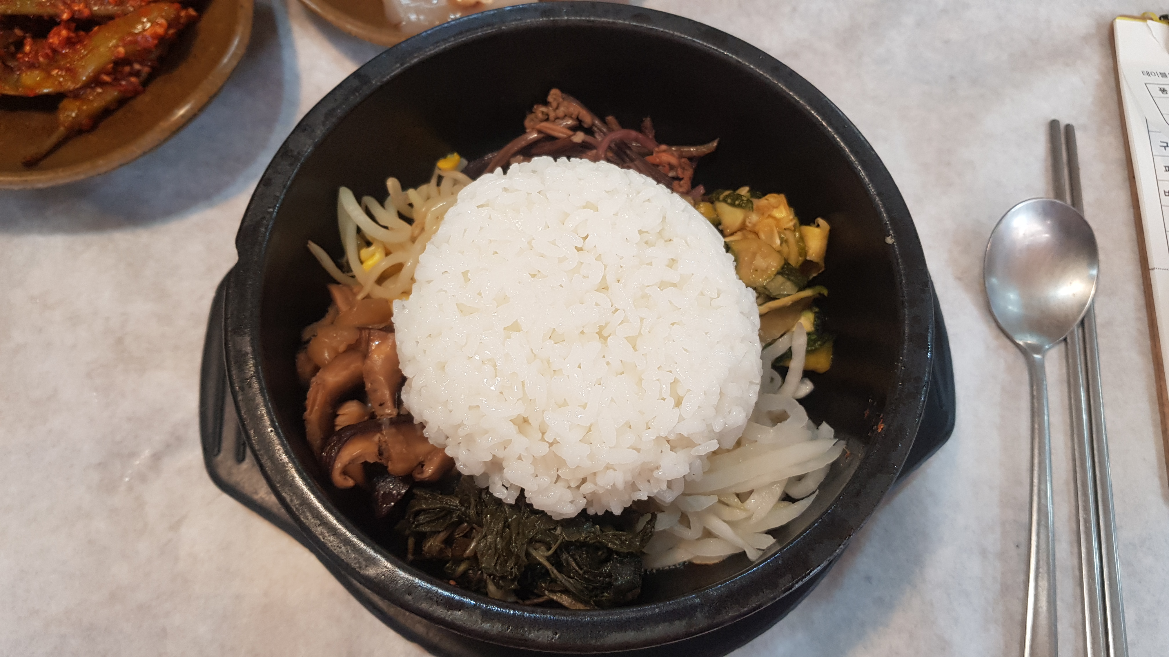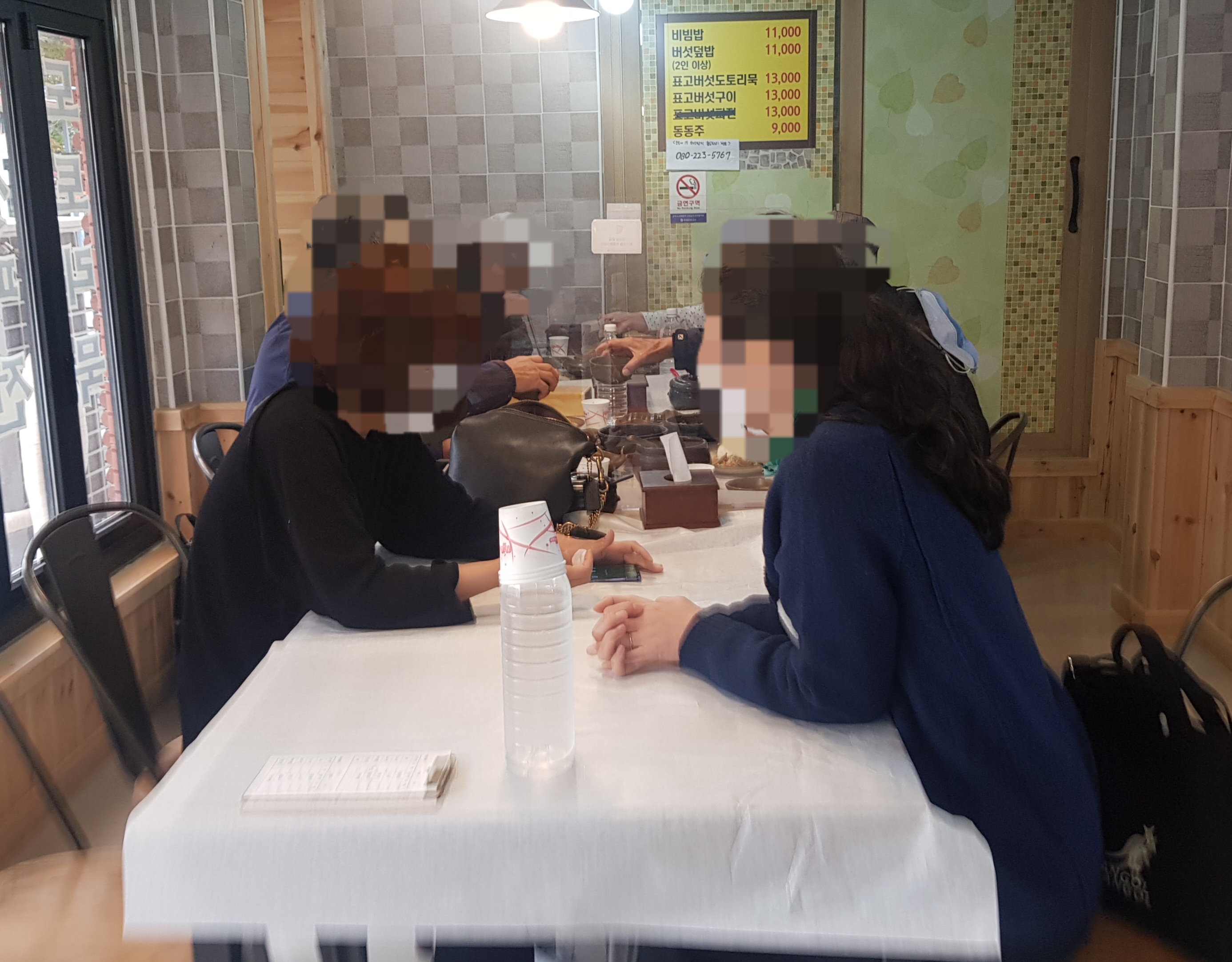 표고버섯파전이 먹고 싶었는데 이제는 판매하지 않는다고 하세요😥어쩔 수 없이 셋이서 비빔밥과 버섯덮밥, 표고버섯구이를 주문했어요.