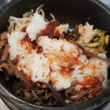 비빔밥도 그리 맵지 않은 고추장을 한 스푼 넣고 석석 비벼 먹으면