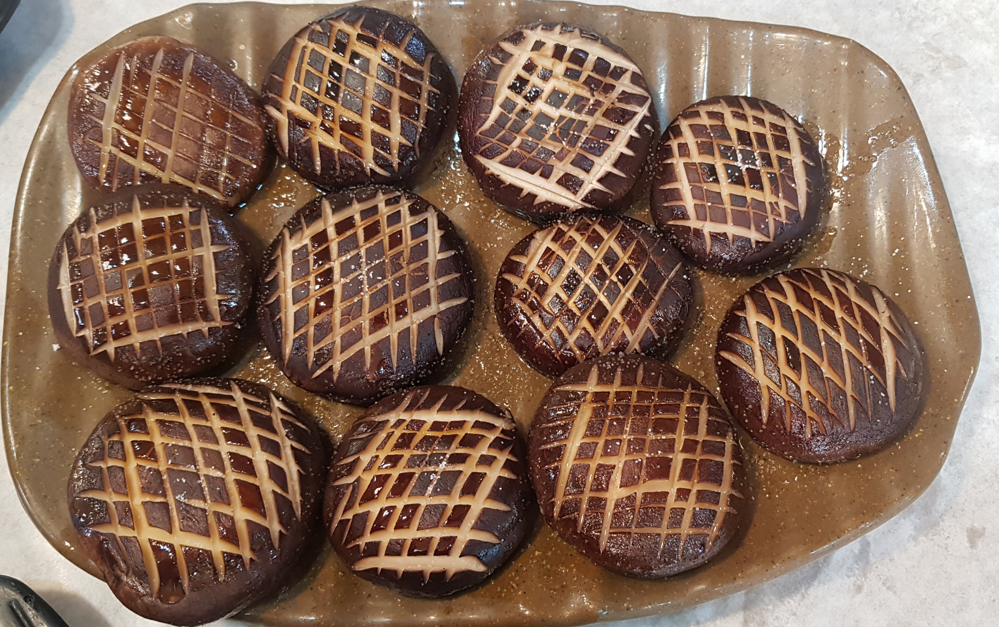 버섯을 통으로 구워서 들기름에 소금만 살짝 뿌린 거라 그냥 버섯 맛이겠거니 했거든요.