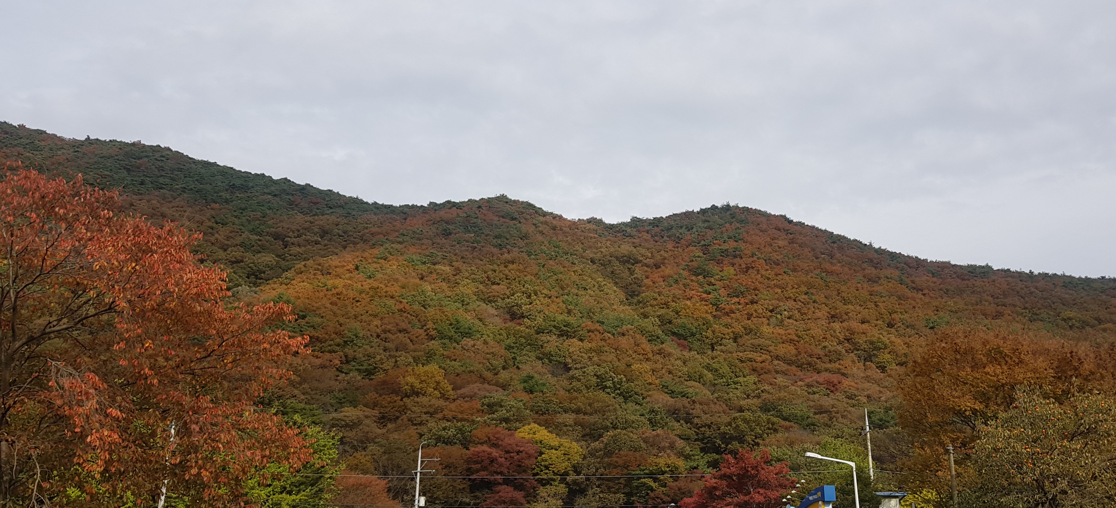 주차장에서 보이는 가을 산과 나무가 아주그냥 아름답네요❤