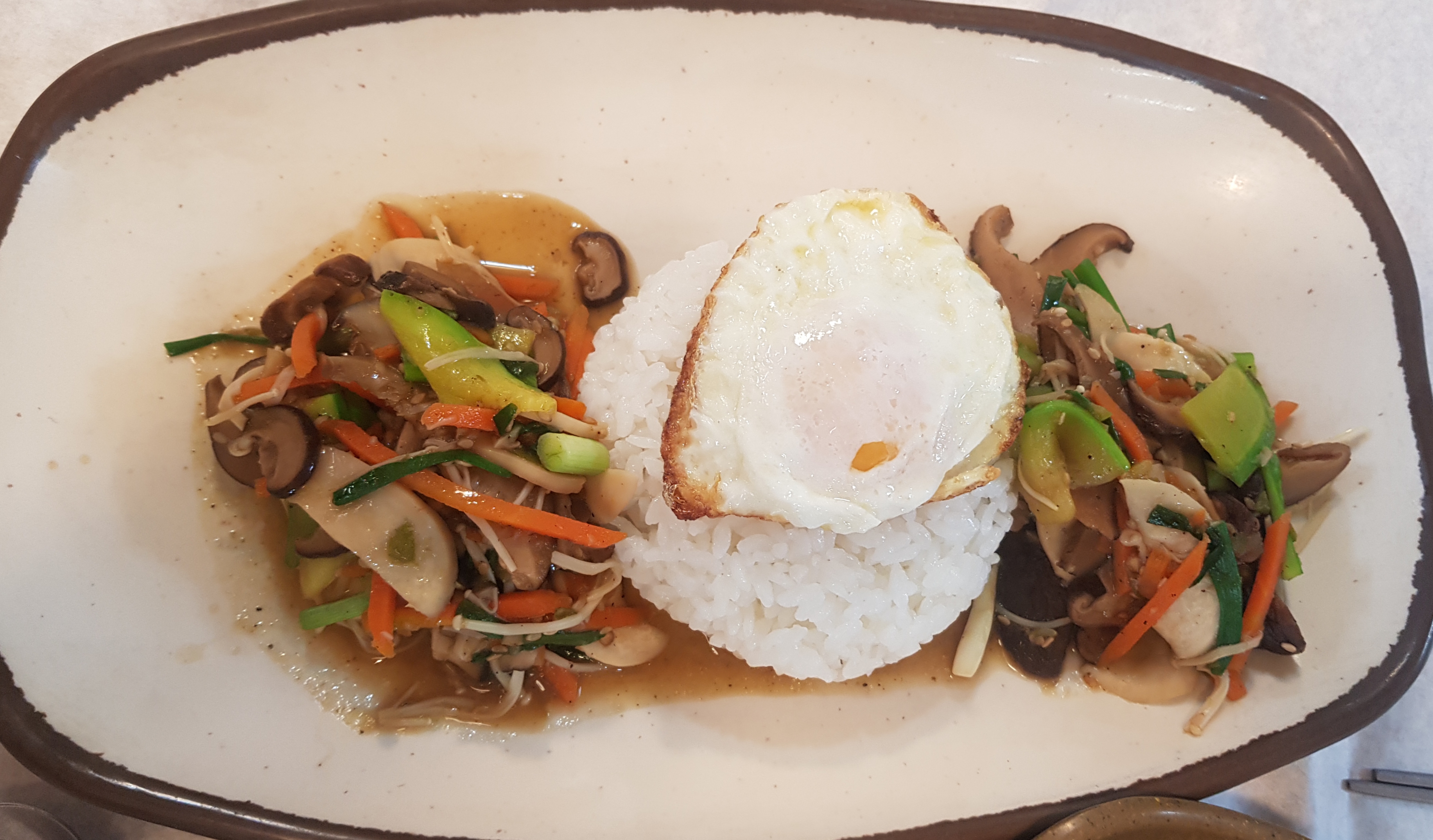버섯덮밥은 가운데 달걀과 함께 먹으면약간 달달하면서도 담백한 중국요리 잡채밥을 먹는 느낌이었고