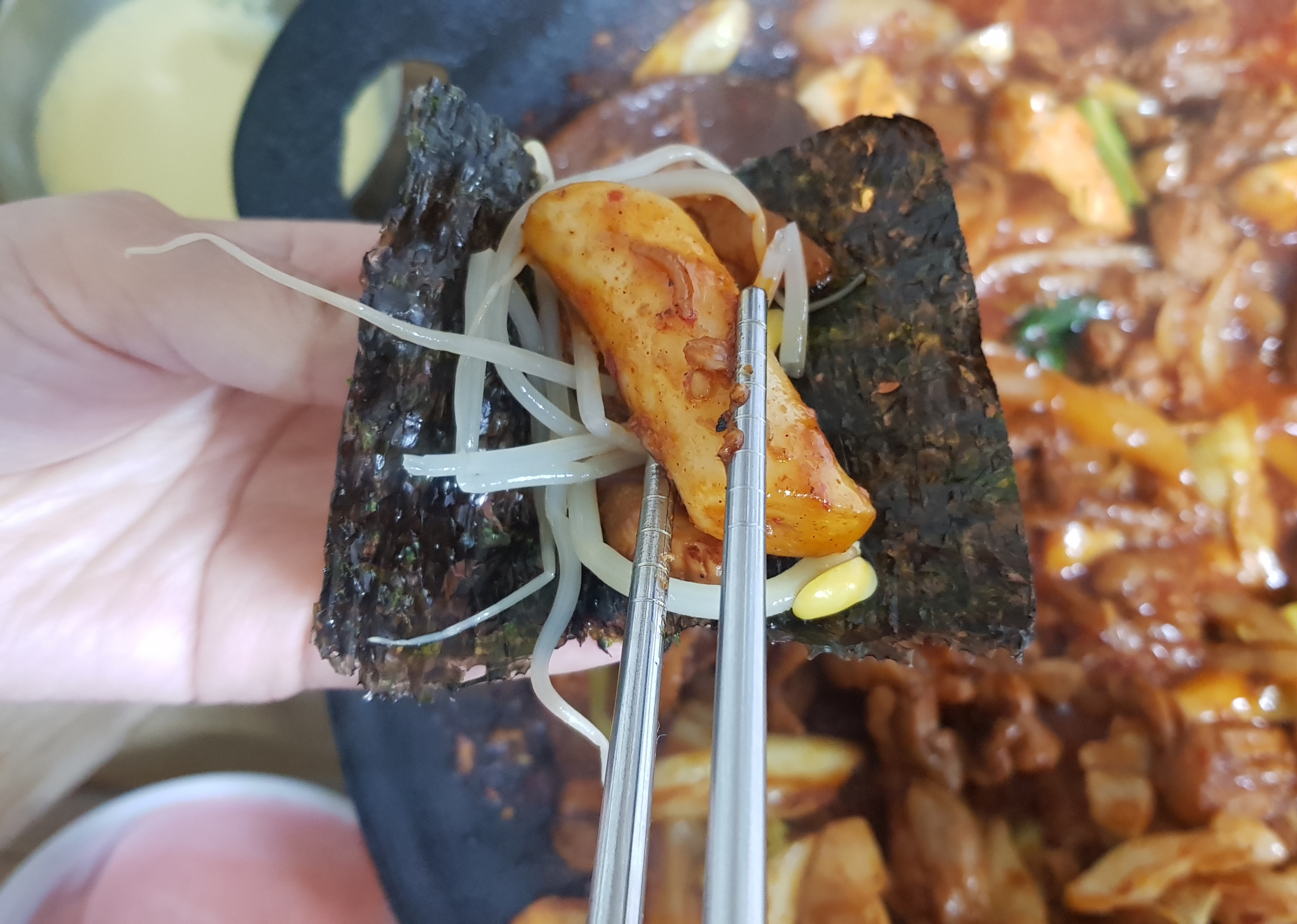 깻잎과 무쌈에 싸 먹고, 김에 싸 먹어도 맛있네요😋