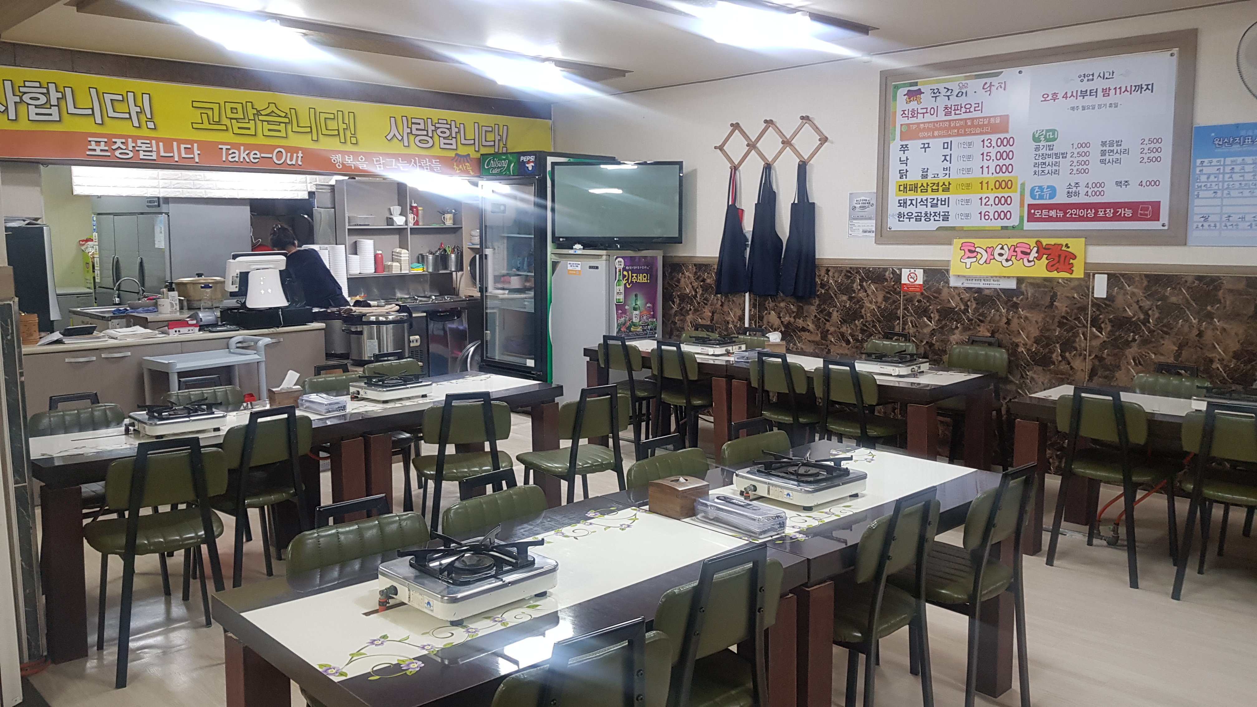 여기 상호명은 쭈꾸미, 낙지인데 닭갈비가 더 맛있다고 소문나 있더라고요.