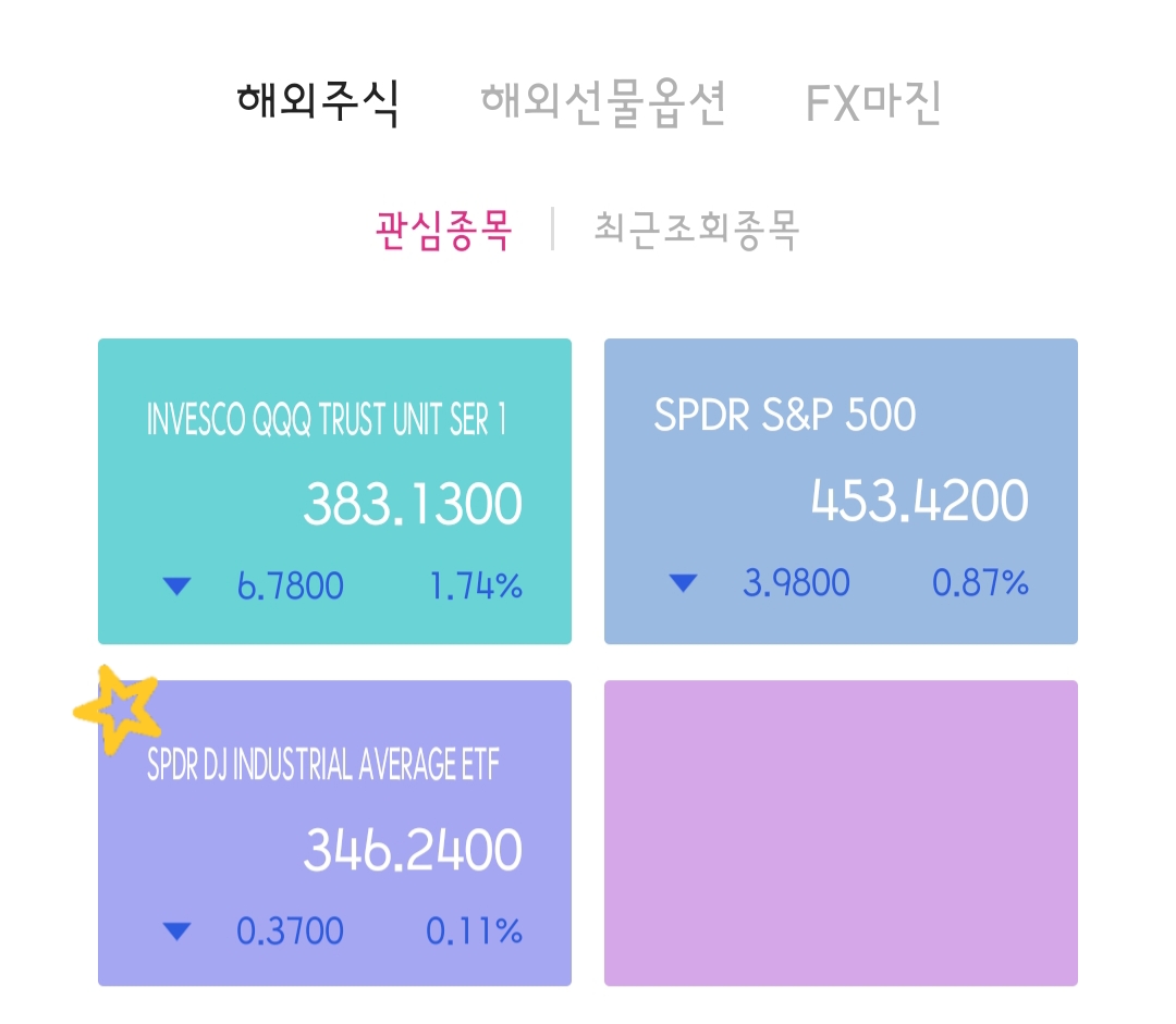 종목 창 위 쪽에 별 모양을 누르면 관심 목록에 추가되어 앱을 열면 첫 화면에서도 관심 ETF를 확인할 수 있어 편리합니다.