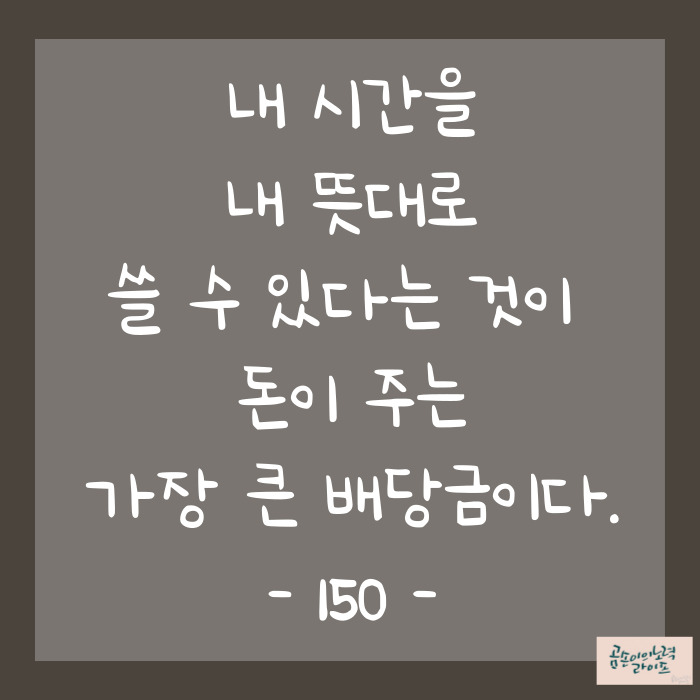 내 시간을 내 마음대로 쓸 수 있다는 것이야말로 경제적 자유를 이루려는 궁극적인 목적이라고 생각해요.