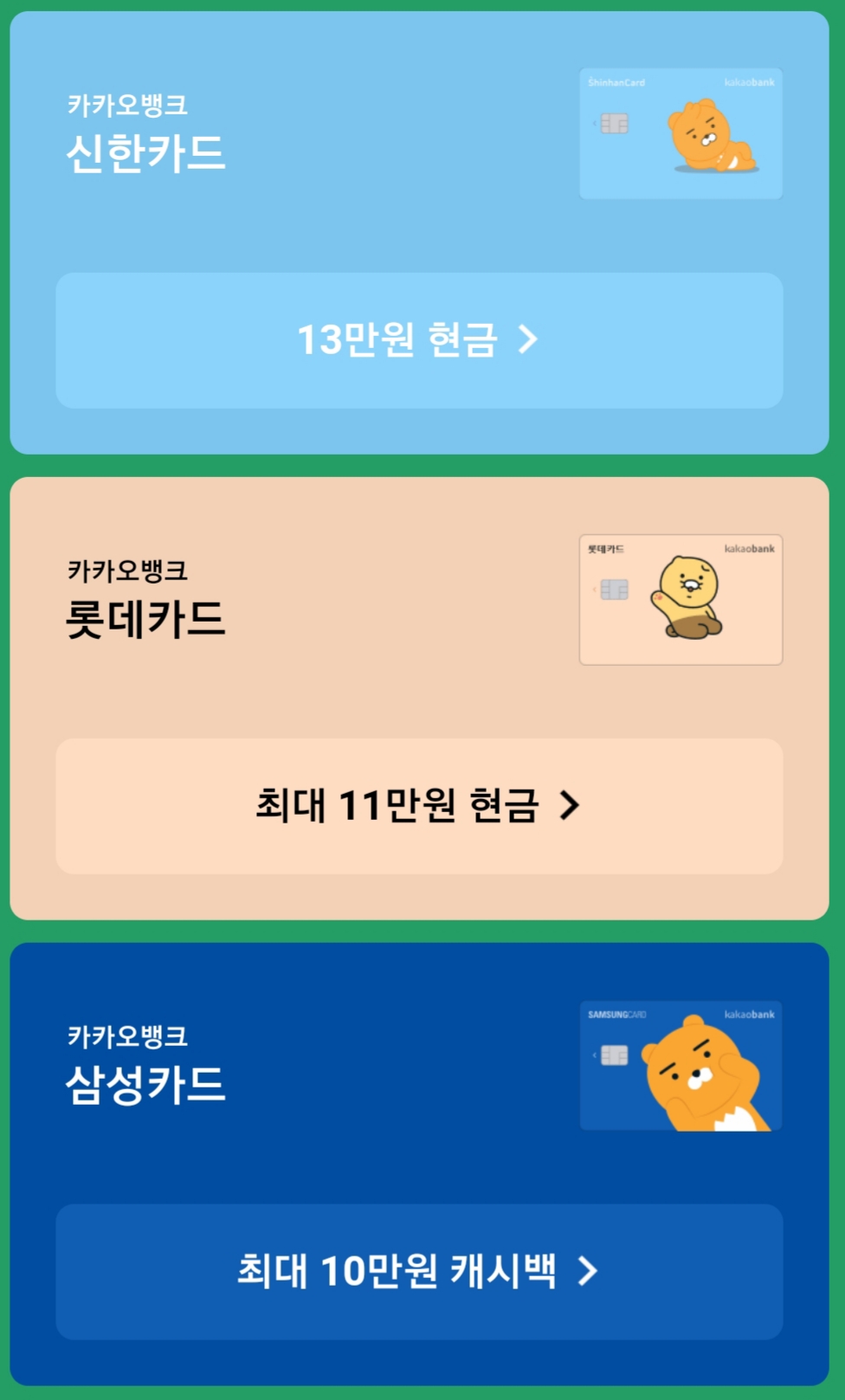 지금도 토스나 카카오뱅크, 카카오페이, 네이버페이 등에서 신용카드 이벤트를 다양하게 하고 있으니 평소에 신용카드를 현명하게 사용하는 분들께 강하게 추천드려요🤗