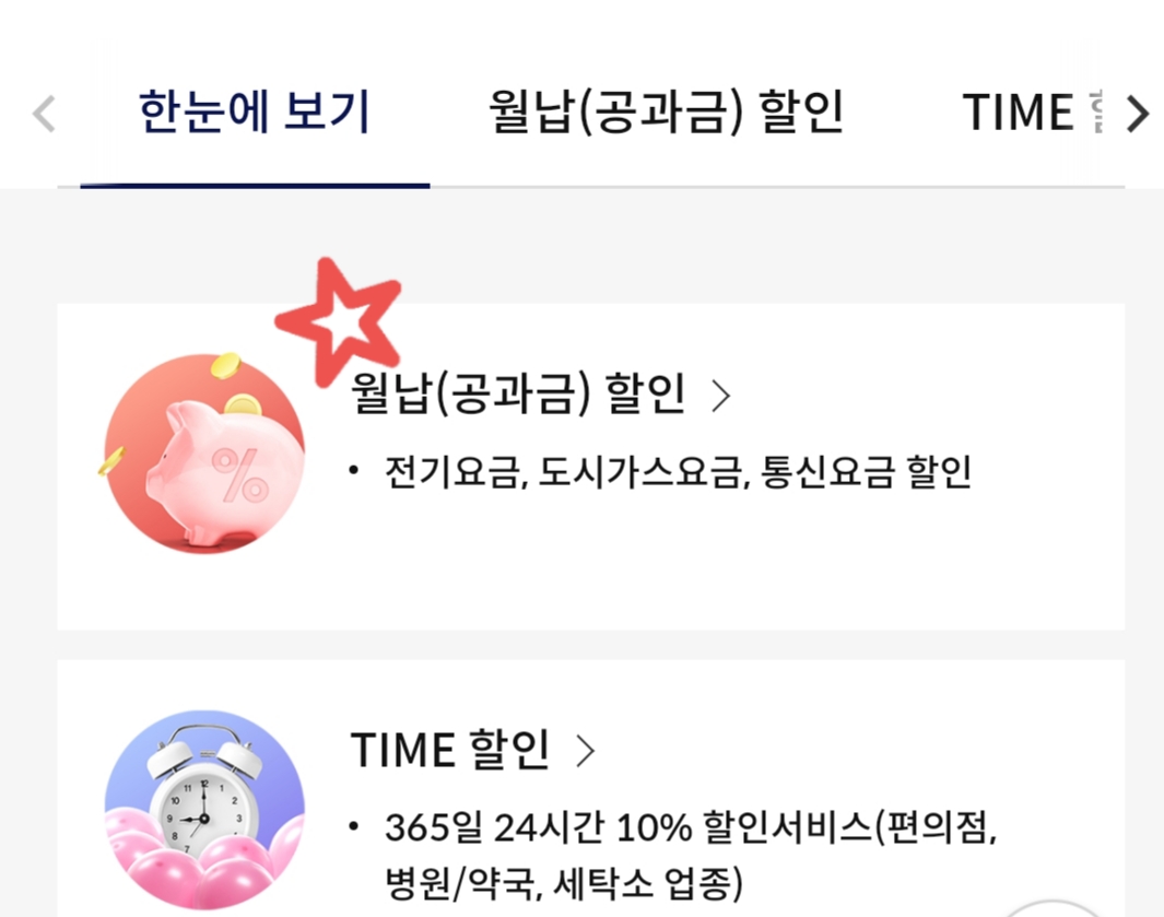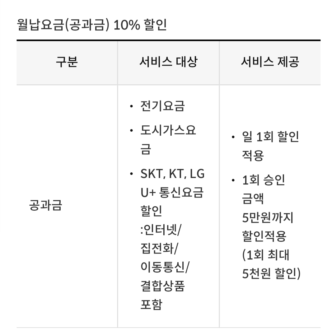 여기서 월납 요금 10% 할인은 승인금액 한도(5만 원)와 할인한도 때문에 별 의미는 없어 보이네요.