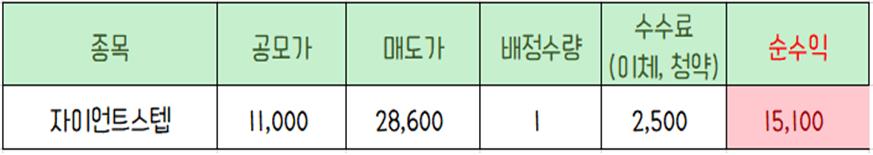 자이언트스텝은 균등배정으로 단 1주밖에 배정받지 못했지만 저렴한 공모가에 꽤 좋은 가격으로 매도했어요.