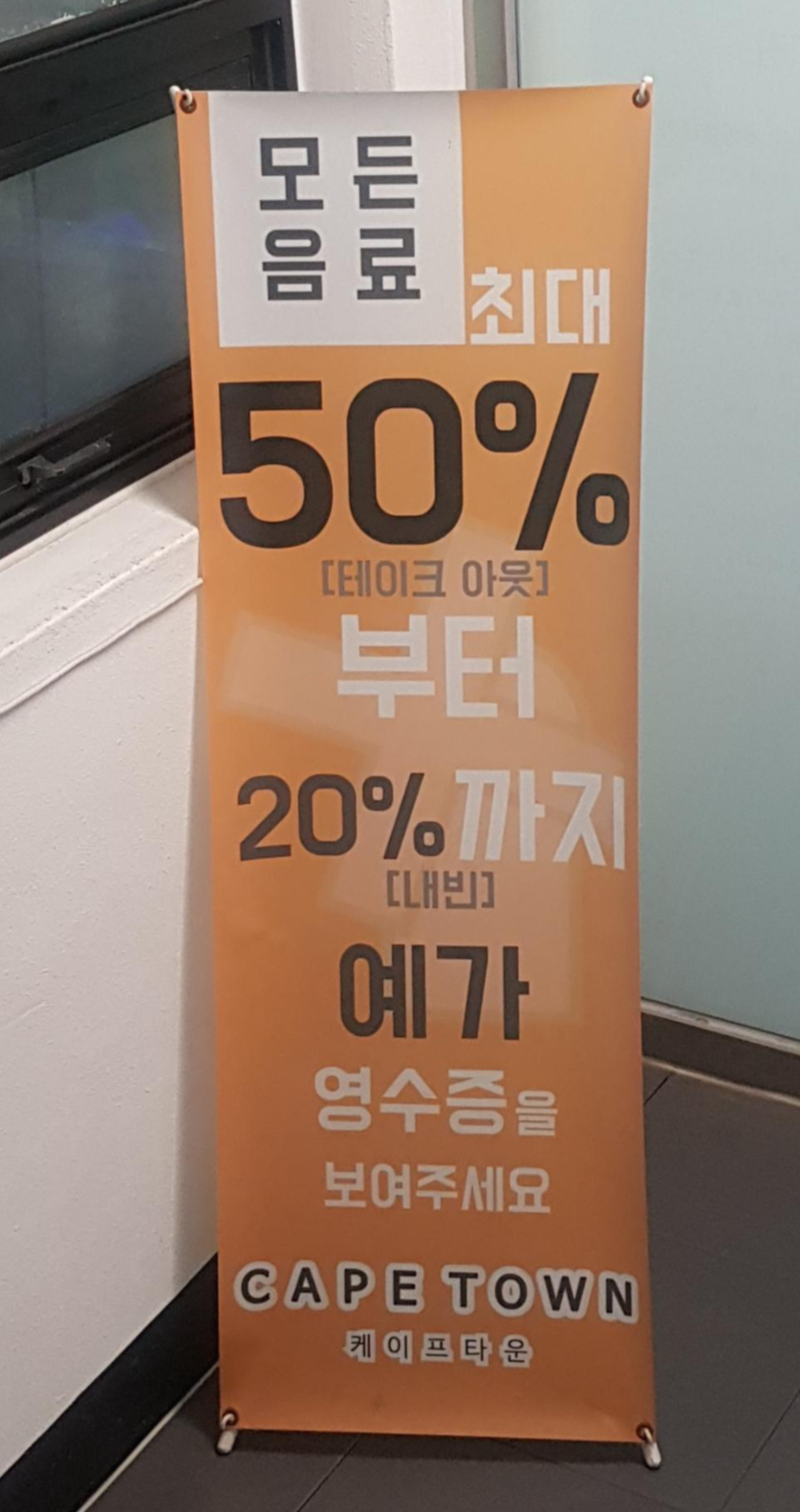 그래서 주차장도 같고 예가에서 식사 후 케이프타운에 방문하면 음료를 할인받을 수 있네요.