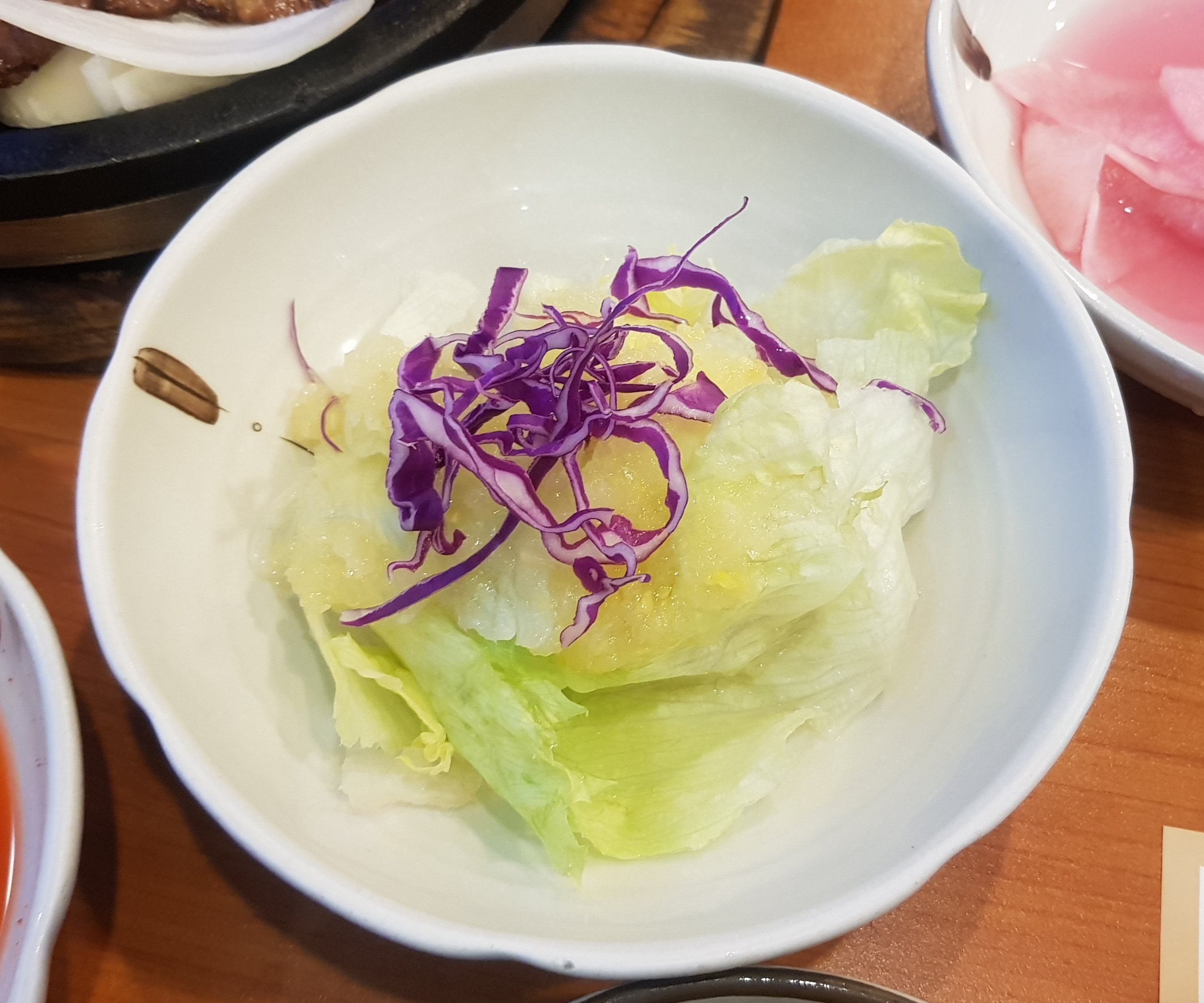 상큼한 양상추 샐러드, 김치전이 나와요.