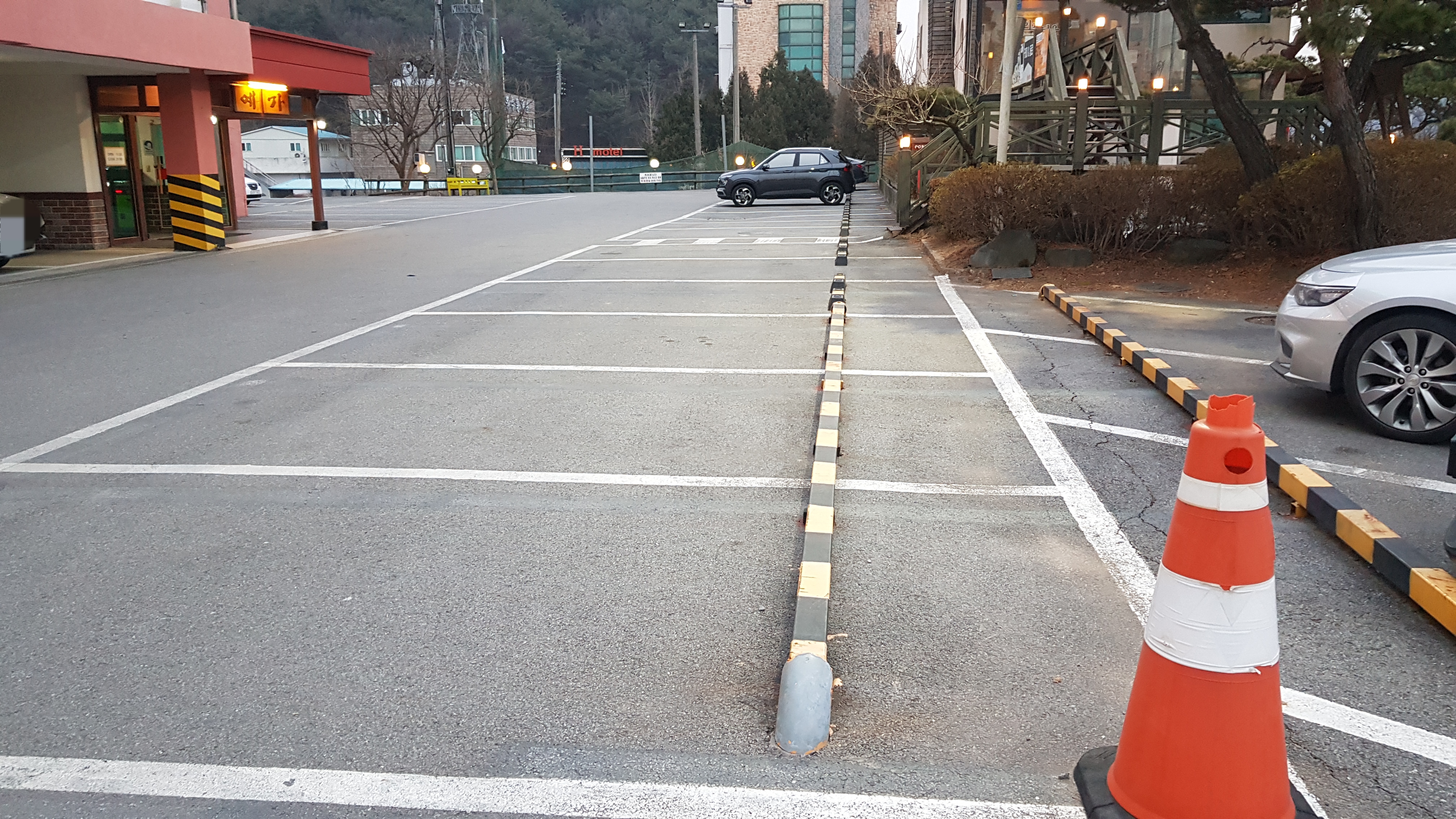 식당 앞에 아주 넓은 전용주차장이 있어요.