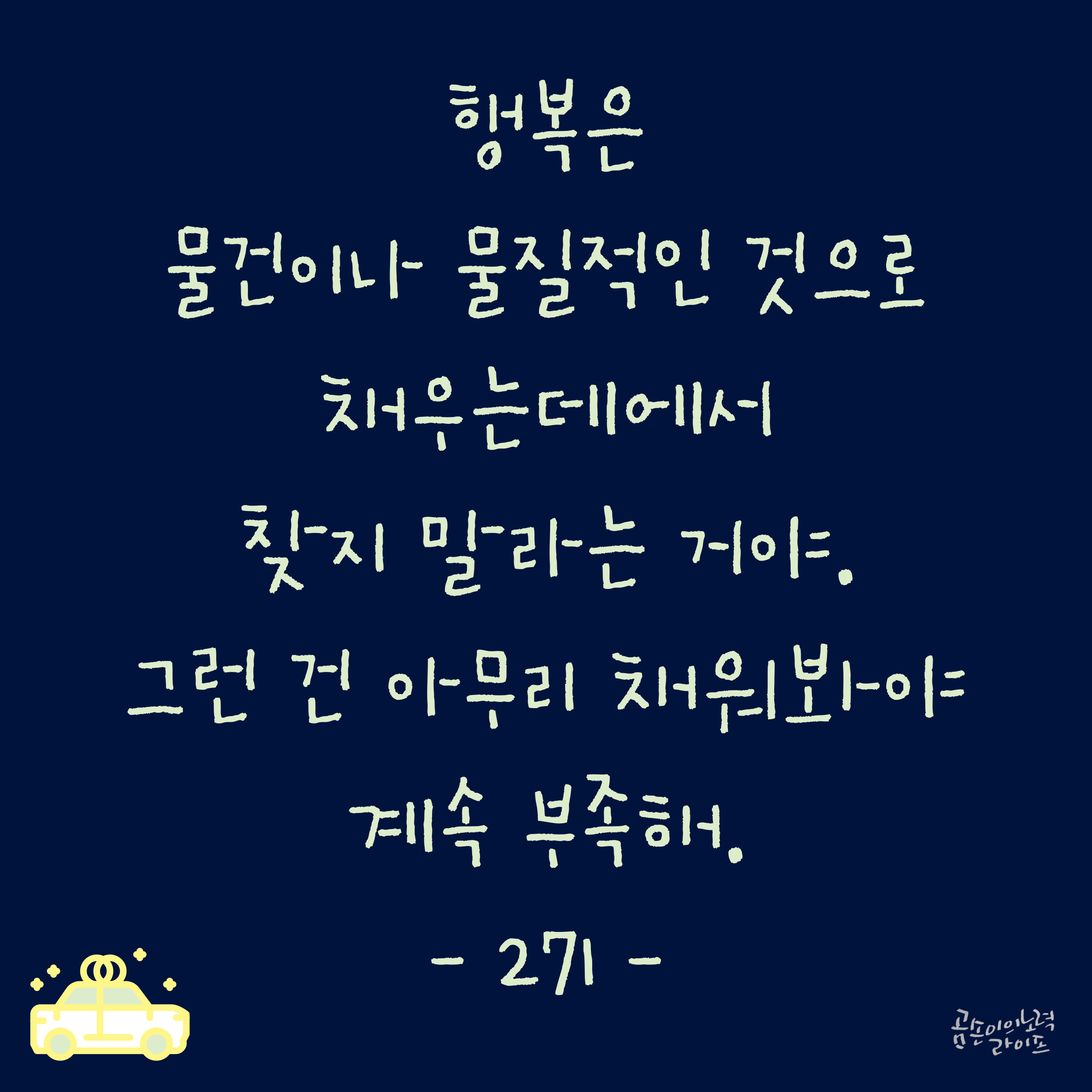 물질적인 만족이 주는 기쁨은 그리 오래가지 않거니와 끝이 없다는 거죠.