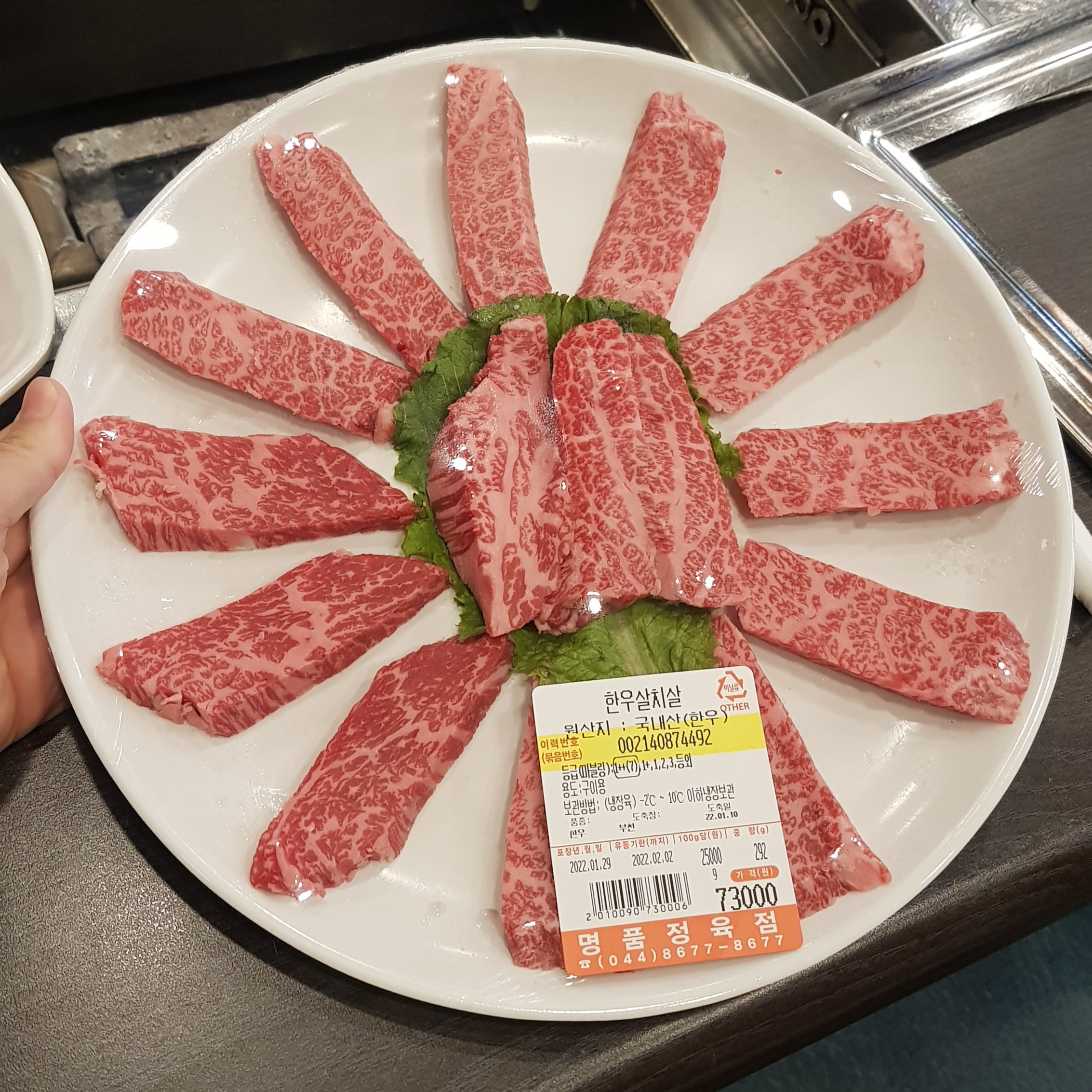 한우는 살치살이 73,000원(292g), 명품 꽃살이 64,800원(324g)이었고,