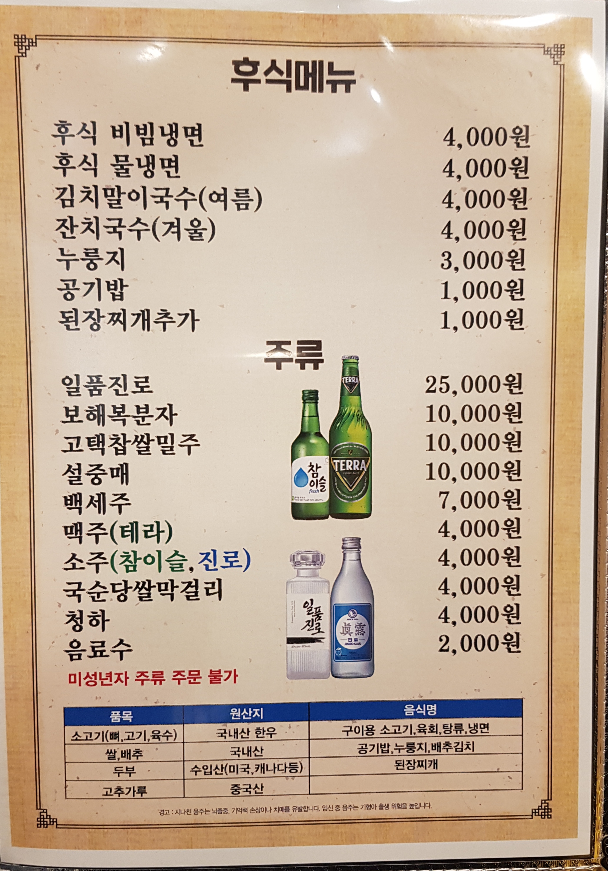 소머리국밥이나 육회비빔밥과 같은 식사 메뉴도 있네요😀