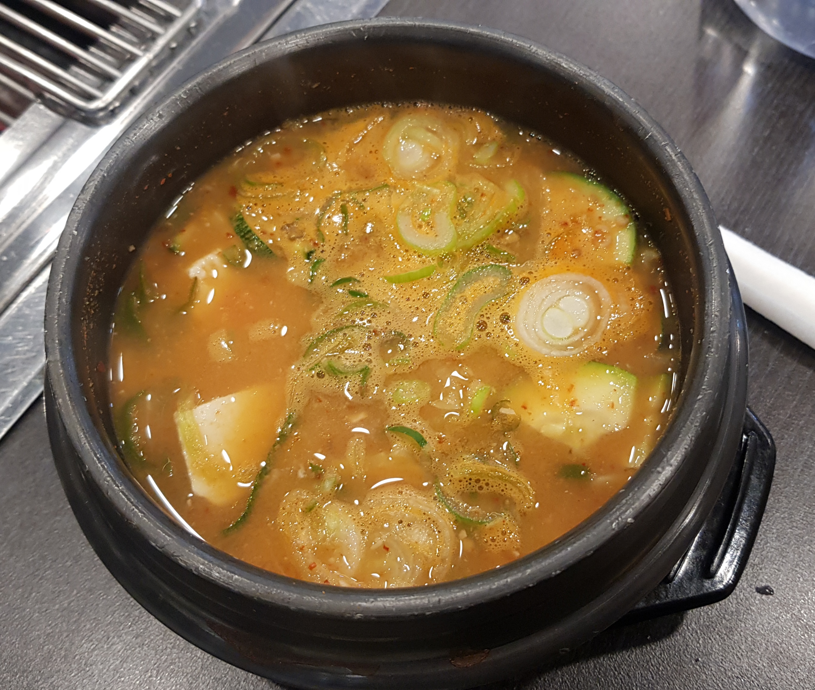 추가로 된장찌개도 주문했어요.고기 맛집답게 된장찌개도 아주 맛있네요.아주 맵거나 짜지 않아서 밥이랑 고기랑 같이 먹기 딱입니다.