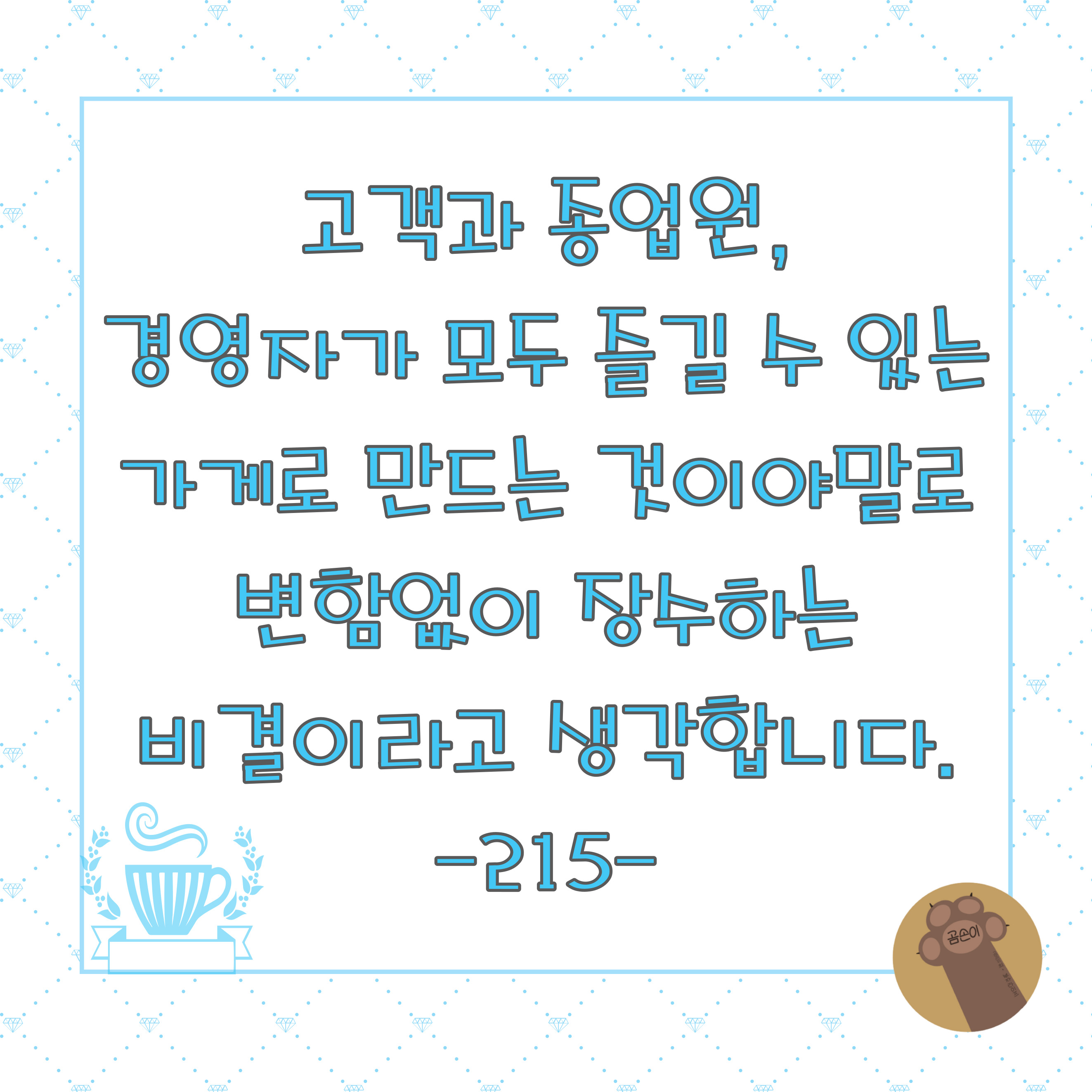 일하는 사람들이 행복한 가게는 손님들도 절로 모여들겠죠?