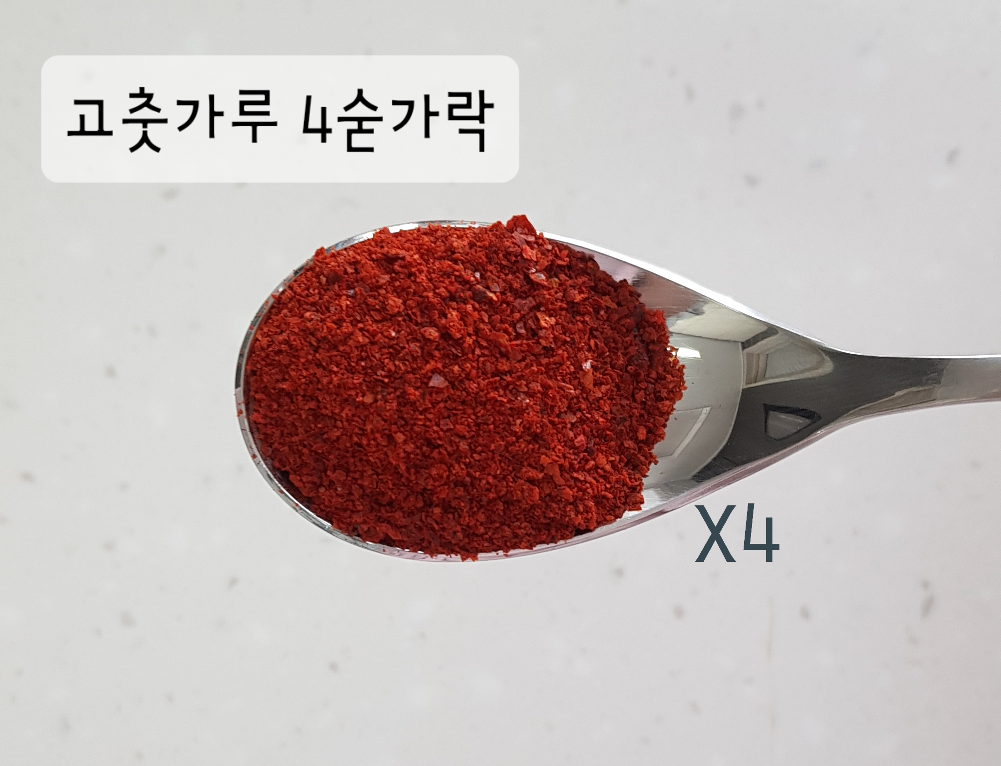 고춧가루 4숟가락, 매실액 2숟가락을 넣어주세요.