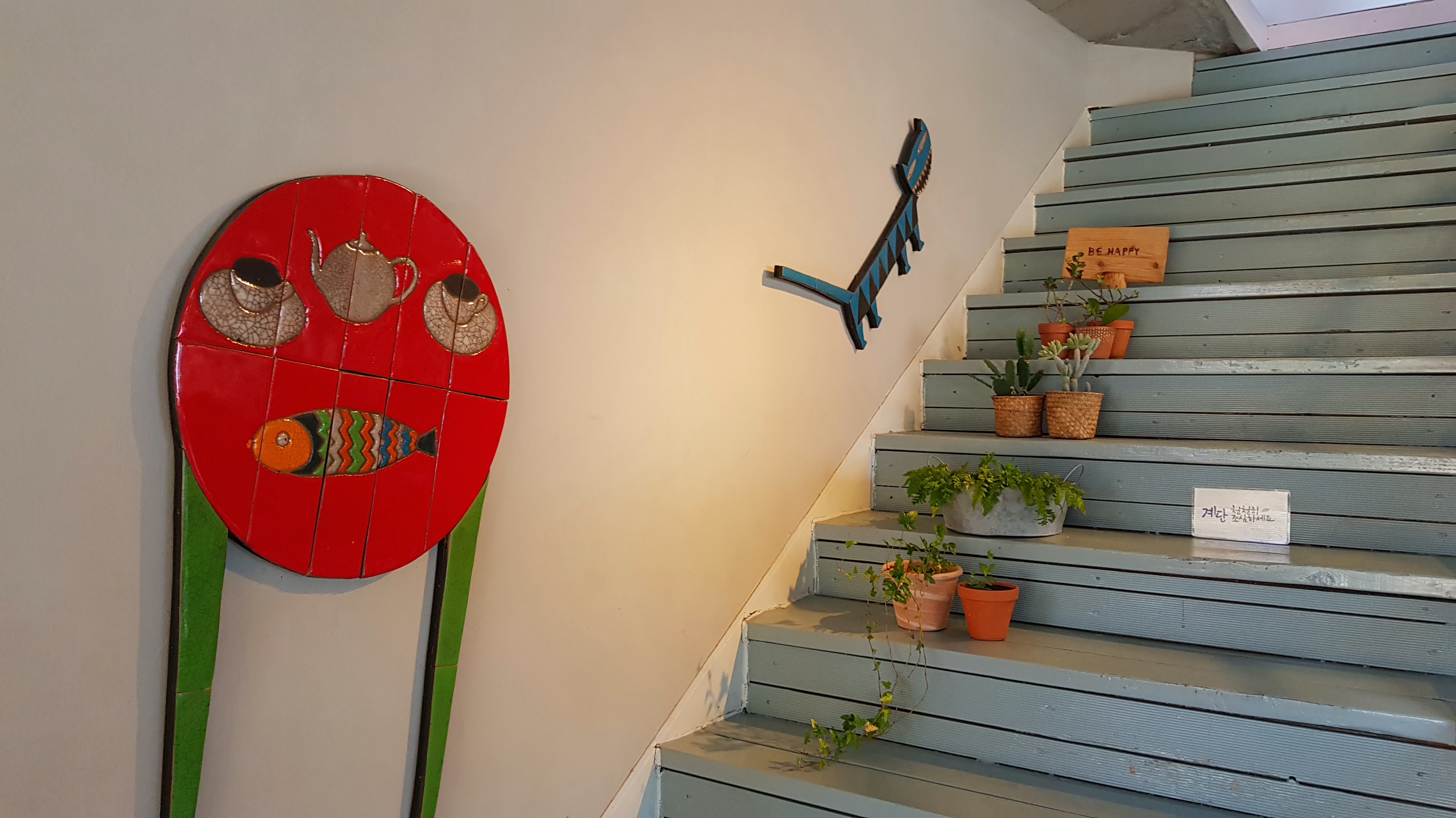 2층으로 올라가는 계단에는 예쁜 화분들이 아기자기 놓여있어요.