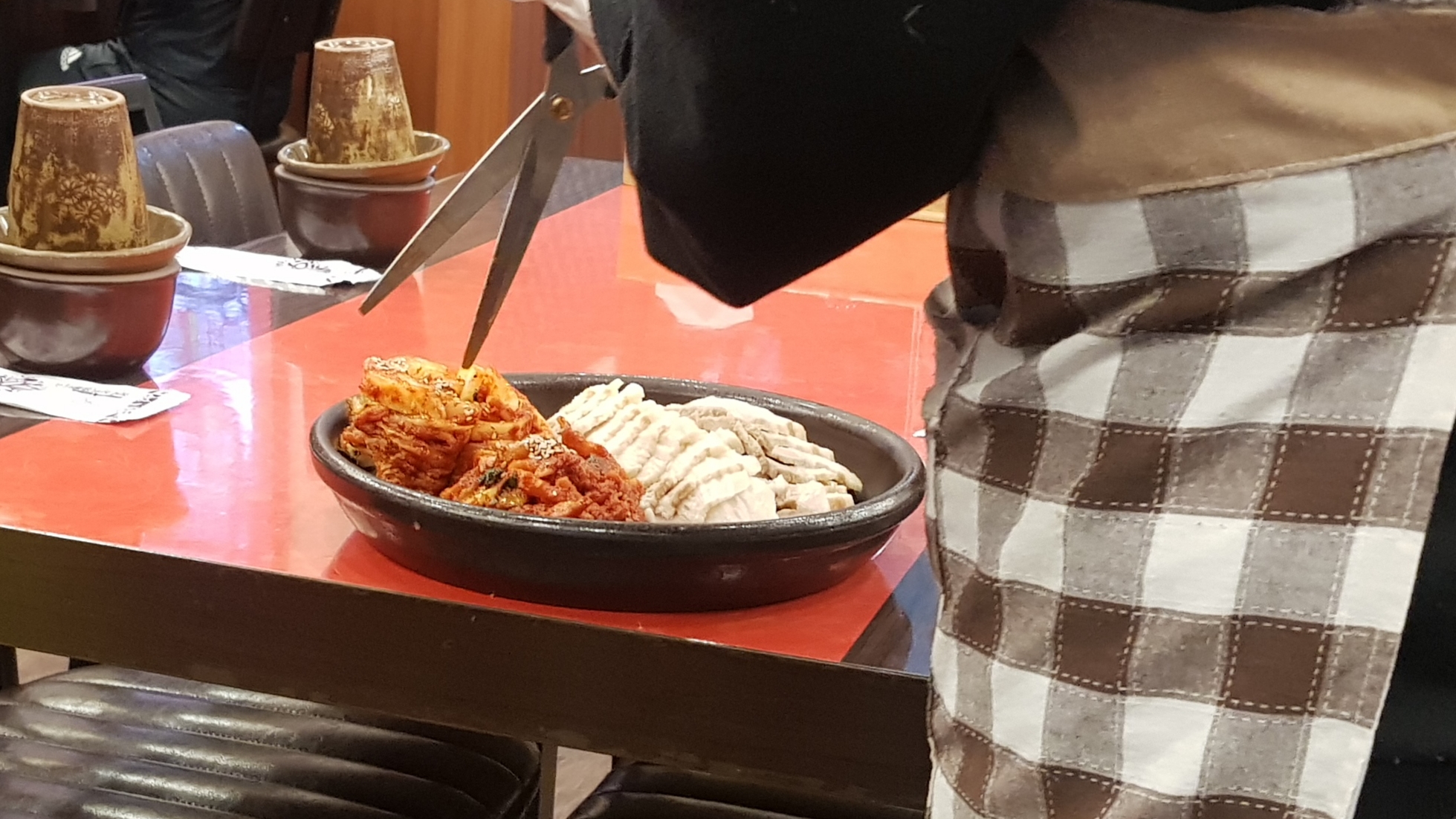 상에 올리기 직전에 바로 김치를 잘라 주시니 더 맛있어 보이네요.😋