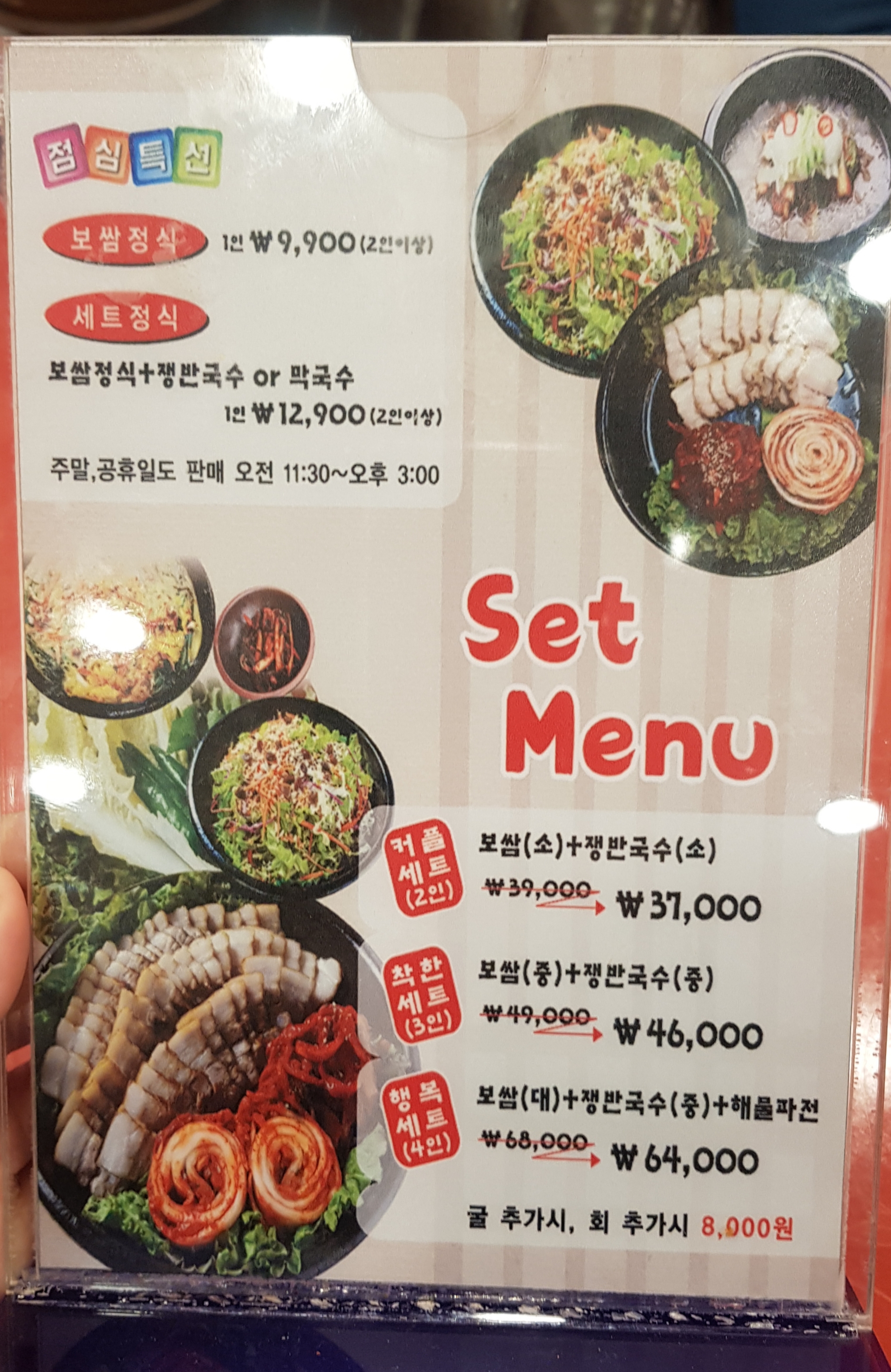 신랑이랑 둘이 갔는데 보쌈과 쟁반국수를 둘 다 먹을 수 있는 커플세트(2인)를 주문했어요.쟁반국수는 물과 비빔 중 선택할 수 있고요.우리는 비빔으로😉