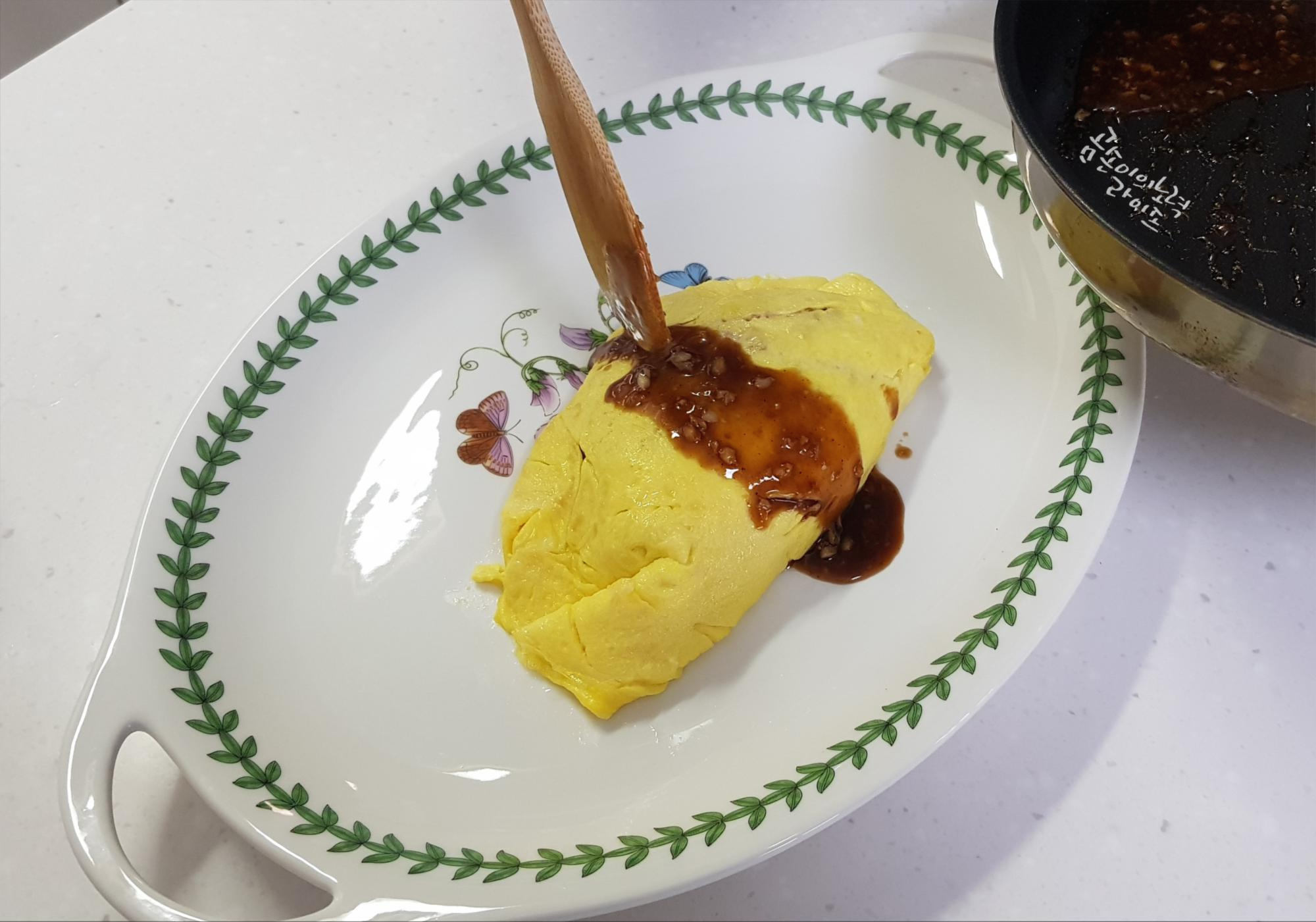 완성된 소스를 오므라이스 위에 얹어 주세요.