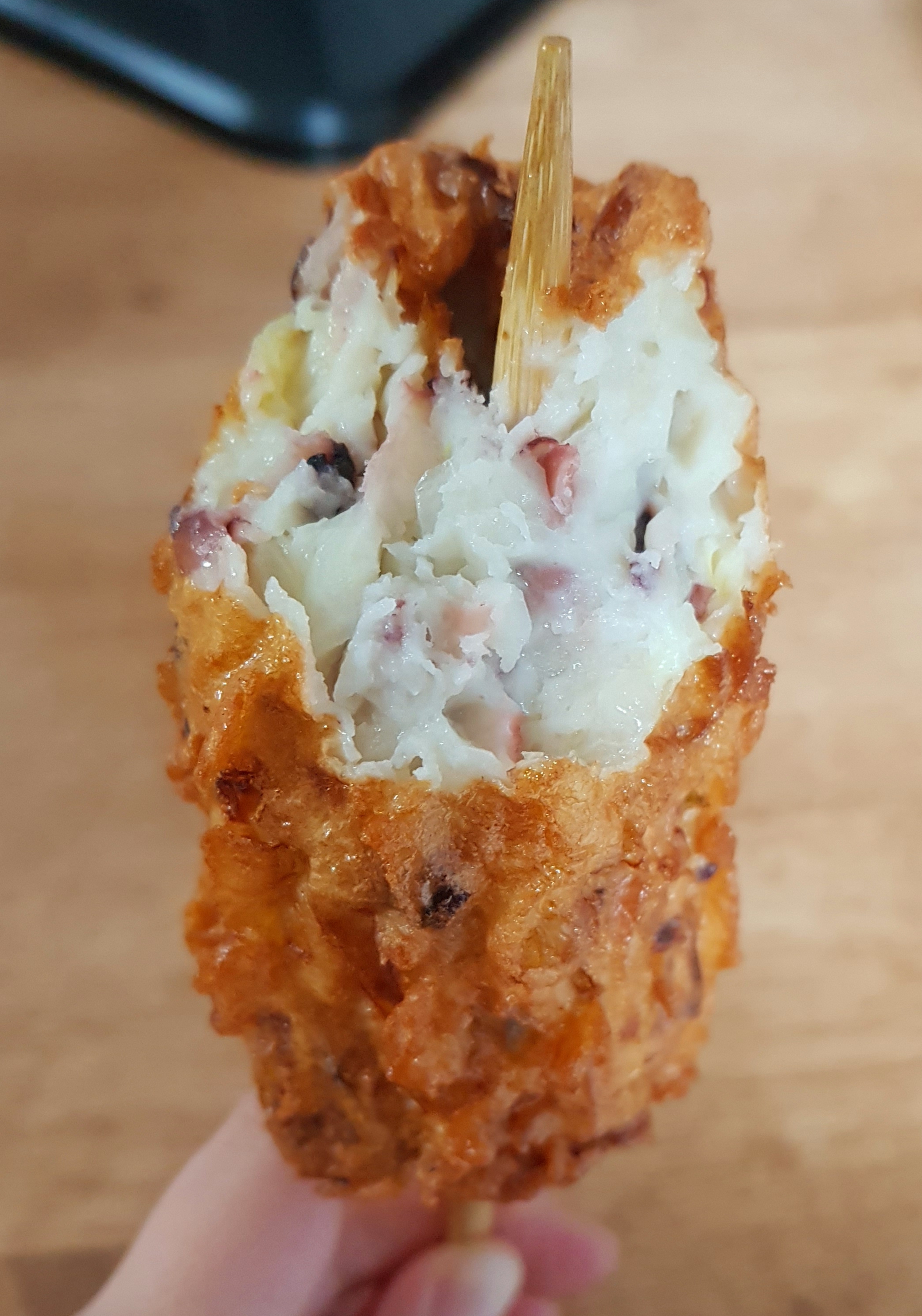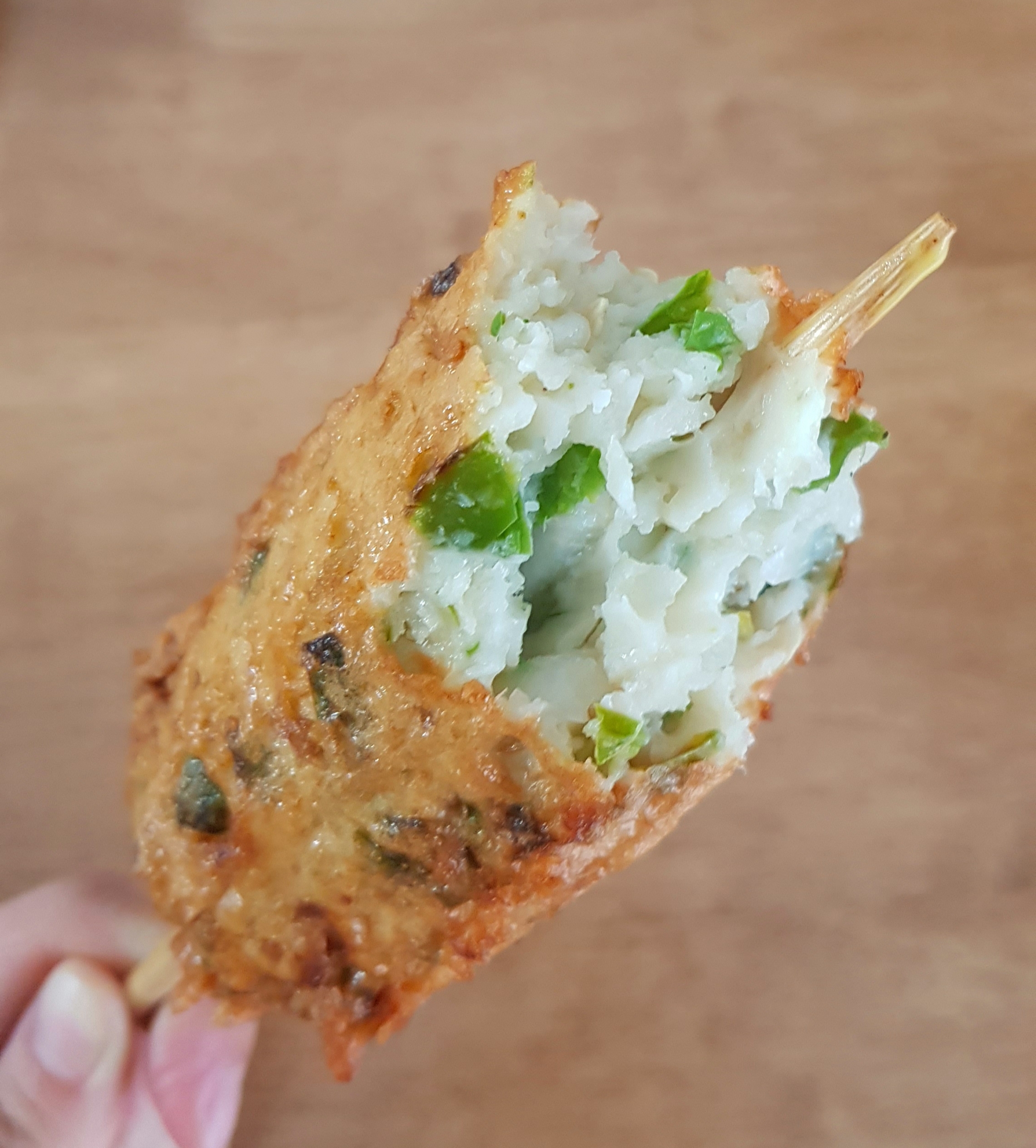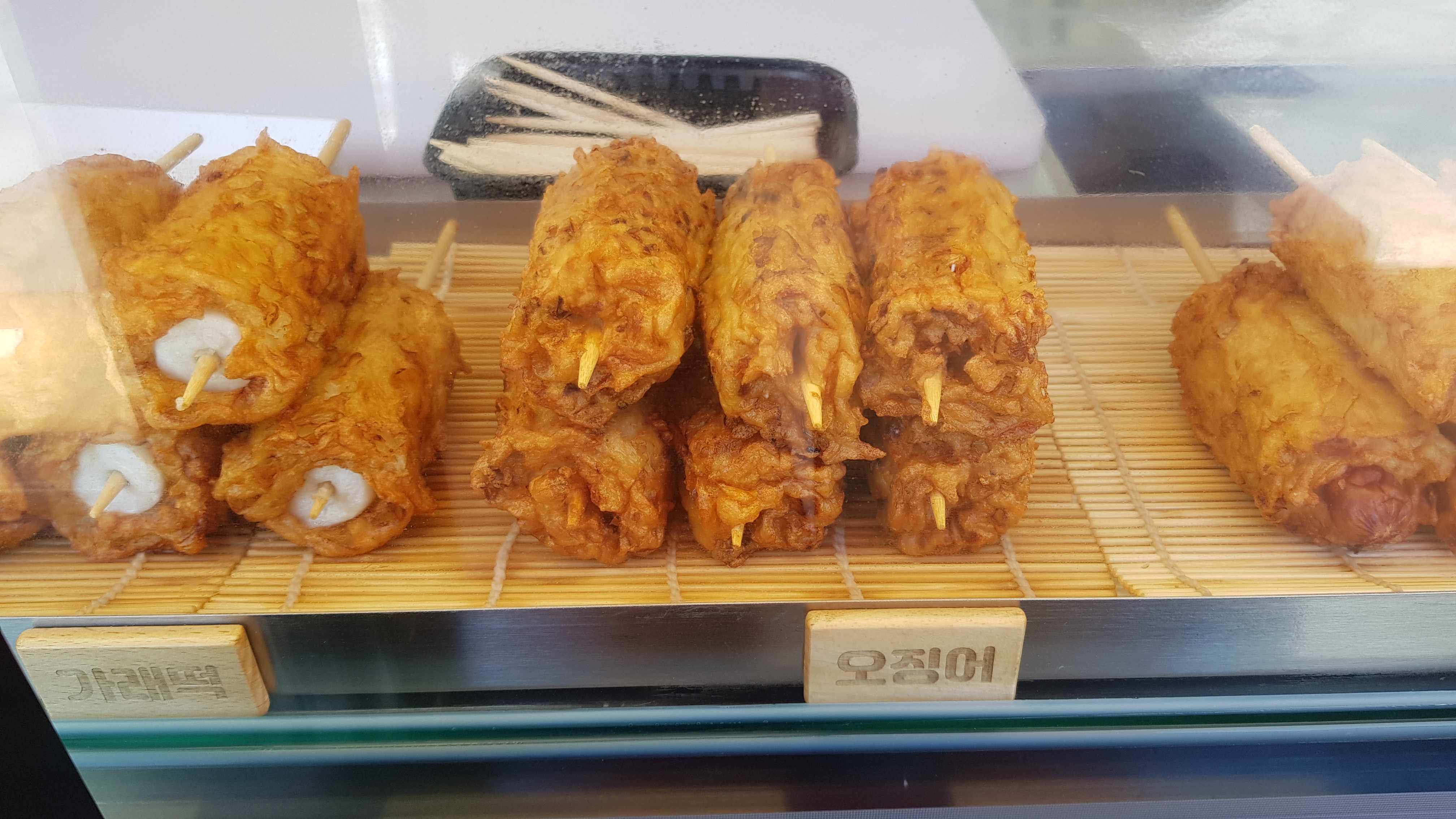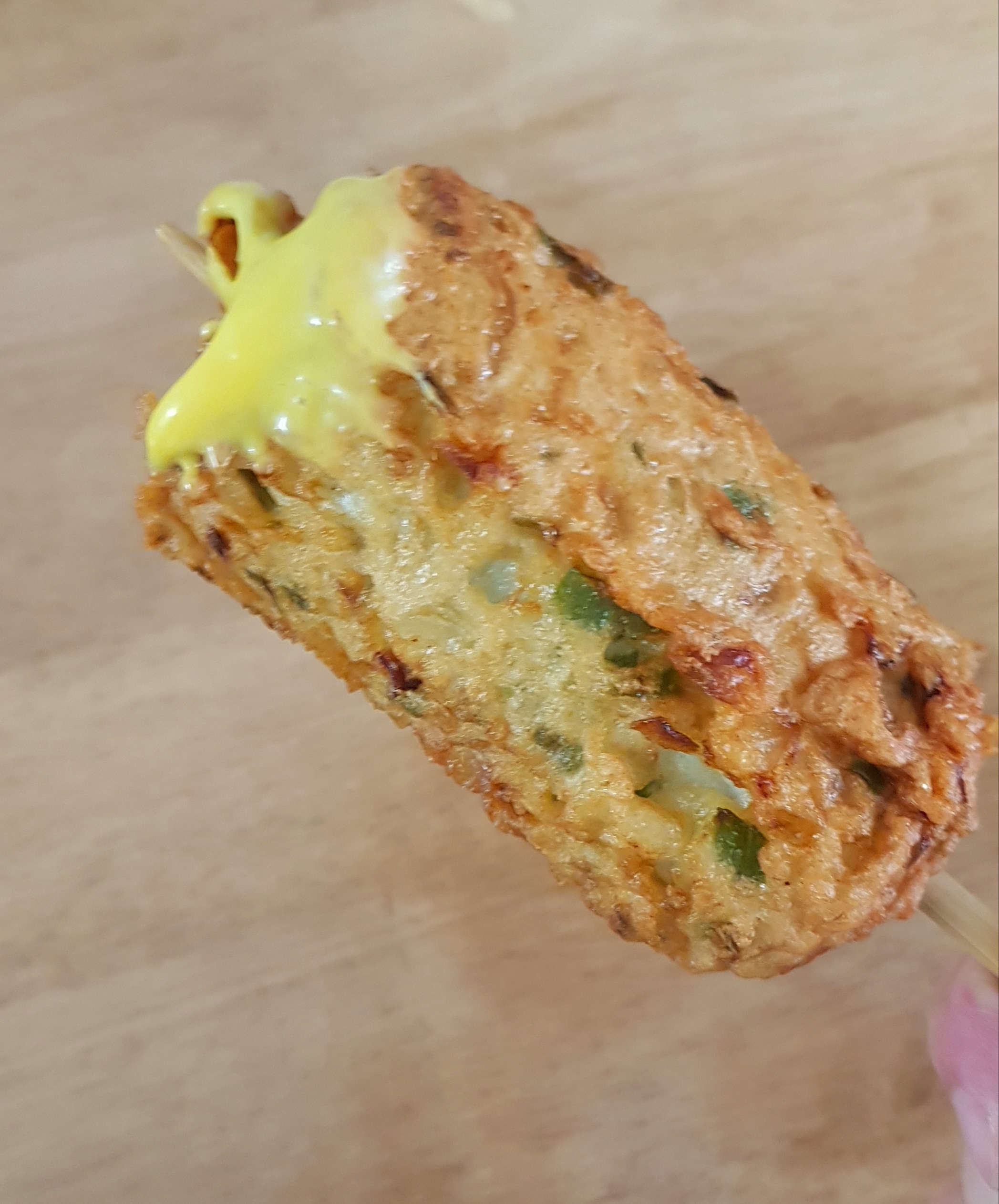 핫바는 오징어, 소시지, 고추, 양파, 치즈, 가래떡 이렇게 있는데, 저는 그중에서 오징어랑, 고추, 어니언을 즐겨먹어요.