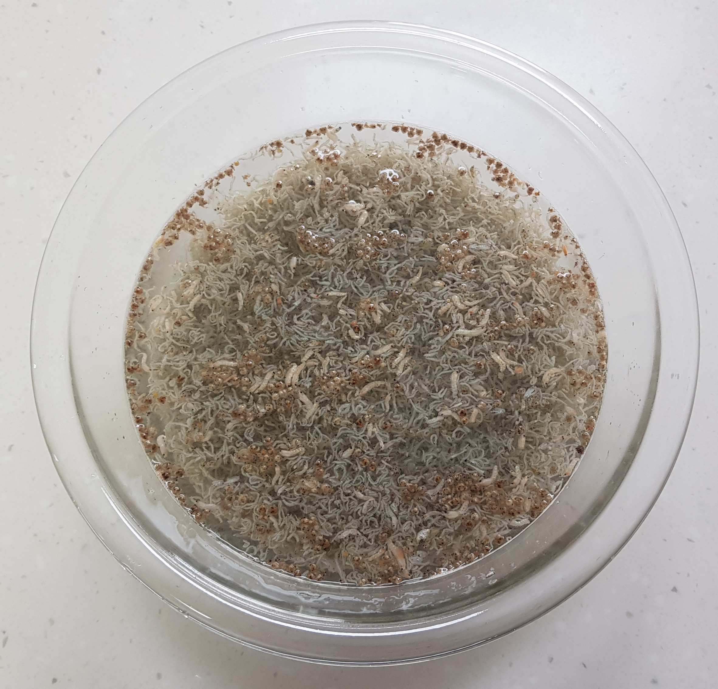 잔가루를 털어낸 후 물에 잠시만 담갔다 꺼내요.