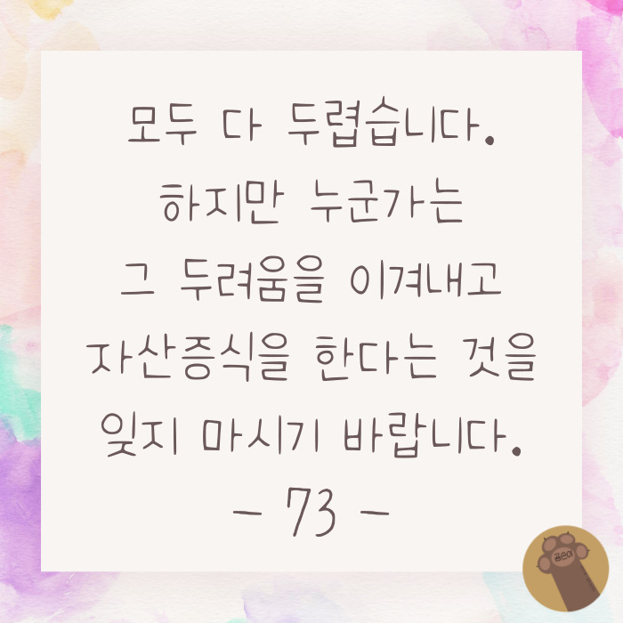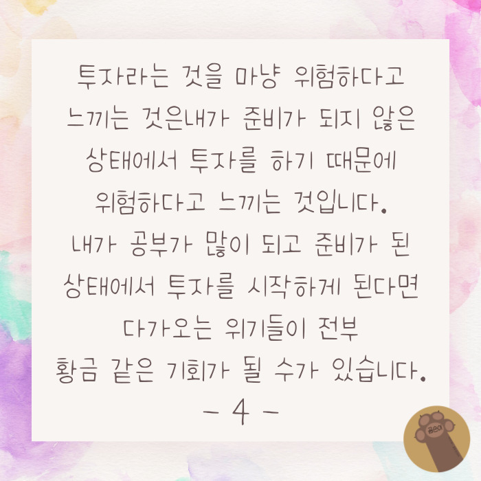 손실이 두려워서 아무것도 하지 않는다면 자산 증식 또한 할 수 없을 거예요.