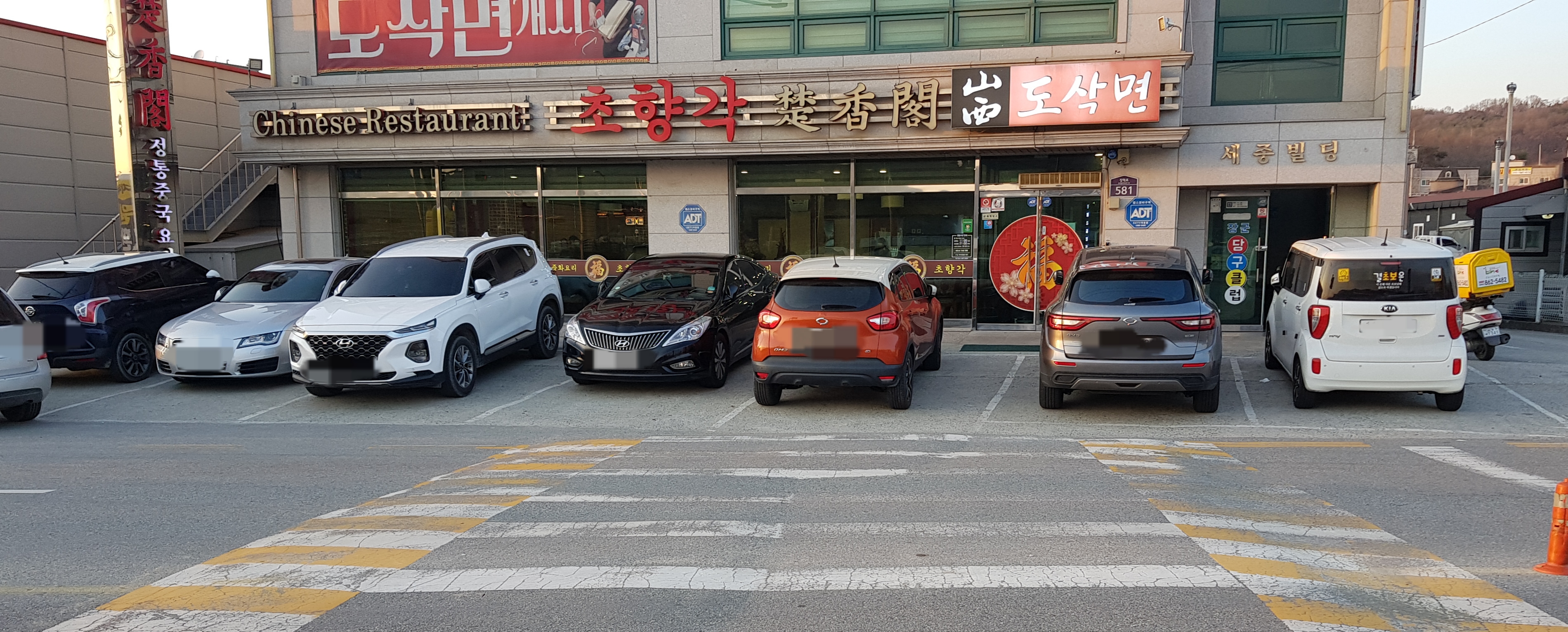 식당 전면에 일곱 대 정도 주차할 수 있고,