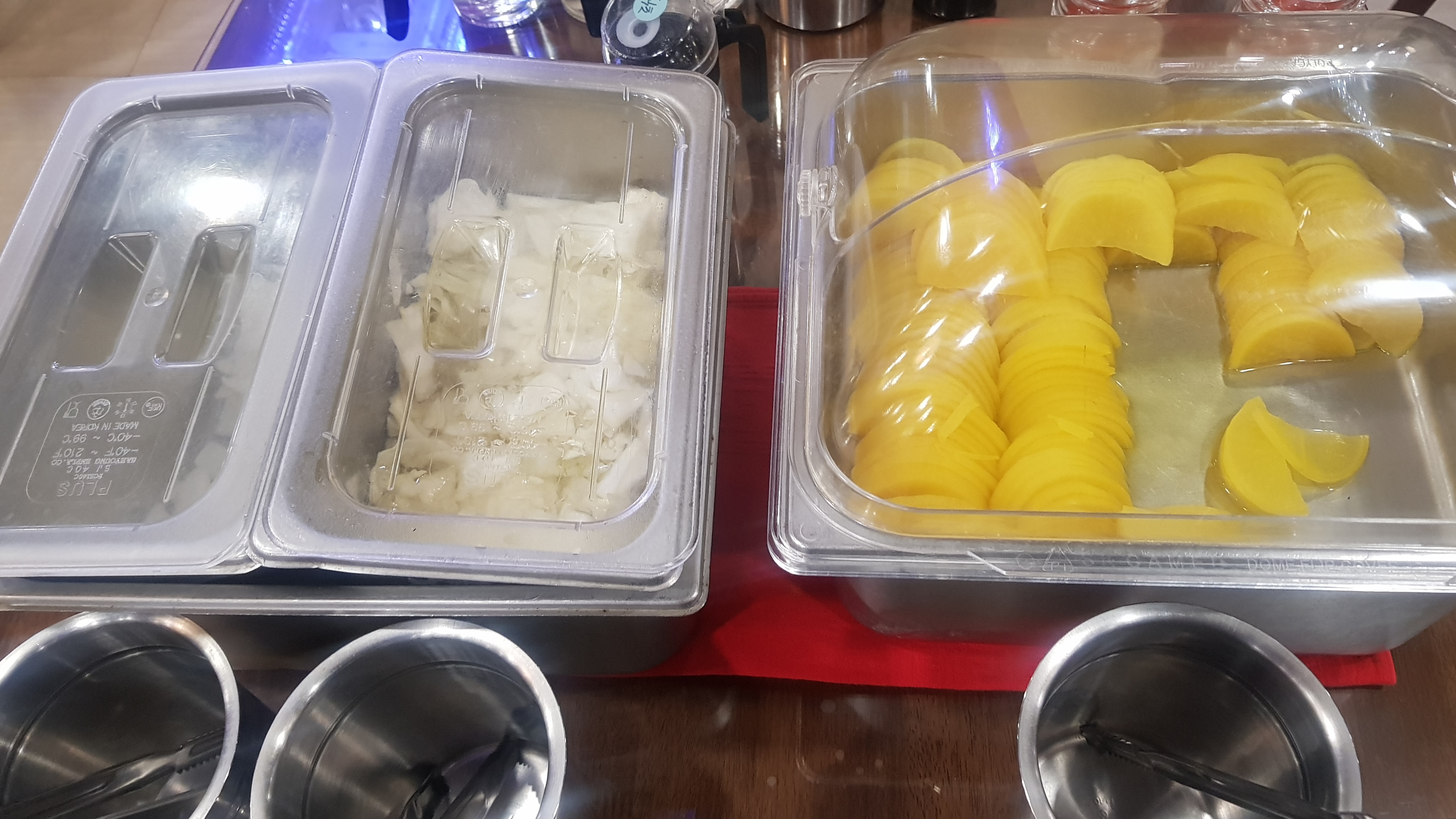 기본 반찬은 생양파와 양배추 초절임, 단무지가 나오고,