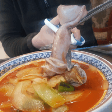 쫄깃쫄깃 부드러운 식감에 오징어랑 같이 먹으면 입에 착착 감깁니다.