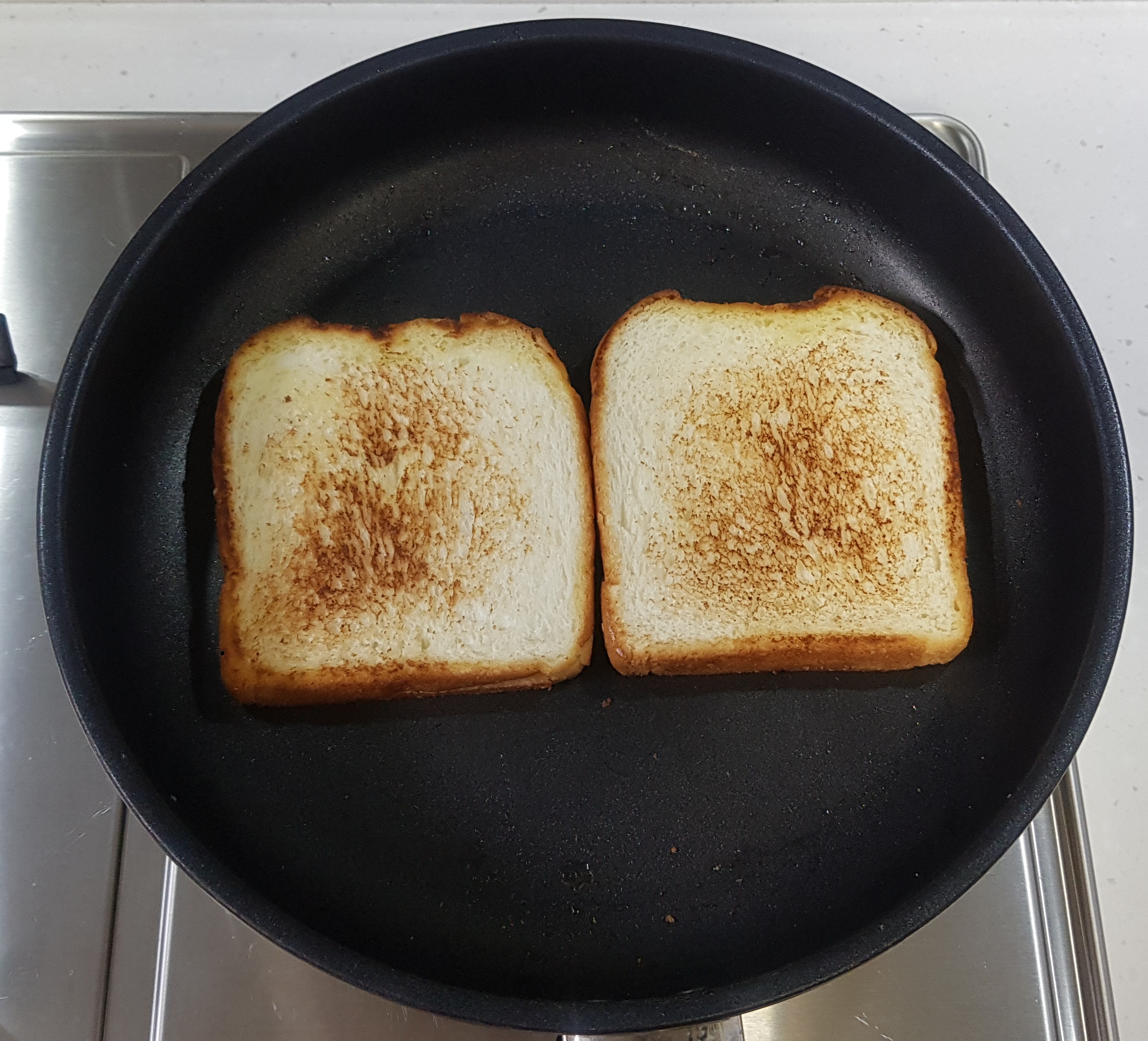 4. 버터에 식빵, 햄, 달걀 굽기