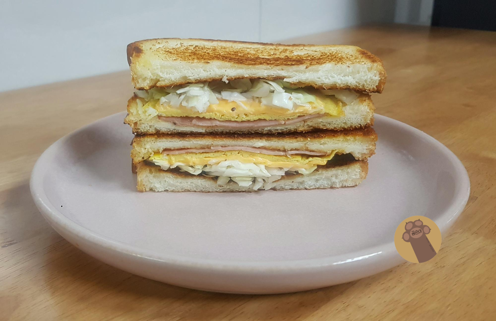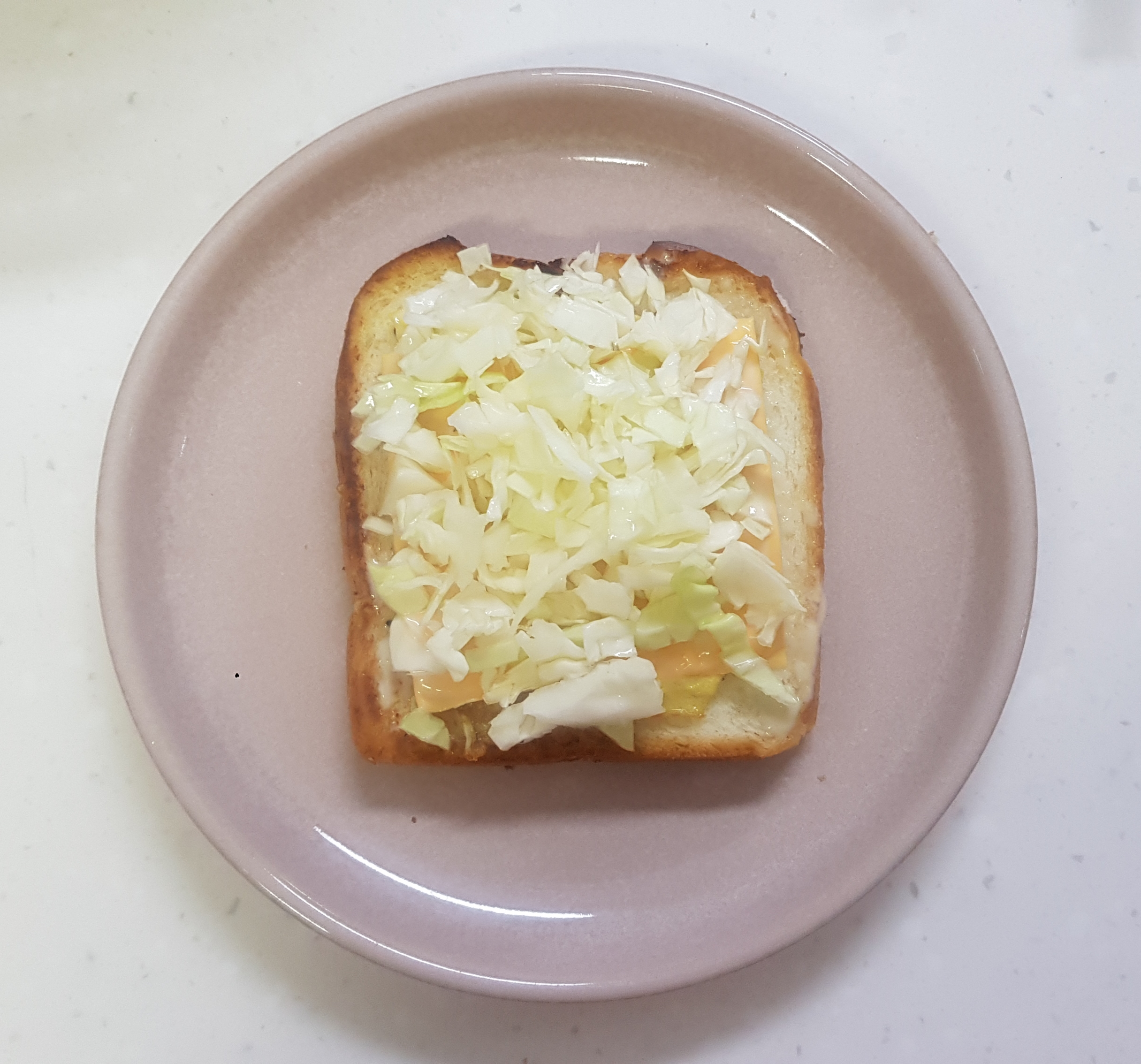마지막으로 얼음물에 담가두었던 양배추를 물기를 빼서 듬뿍 올려주고 식빵을 덮어주면