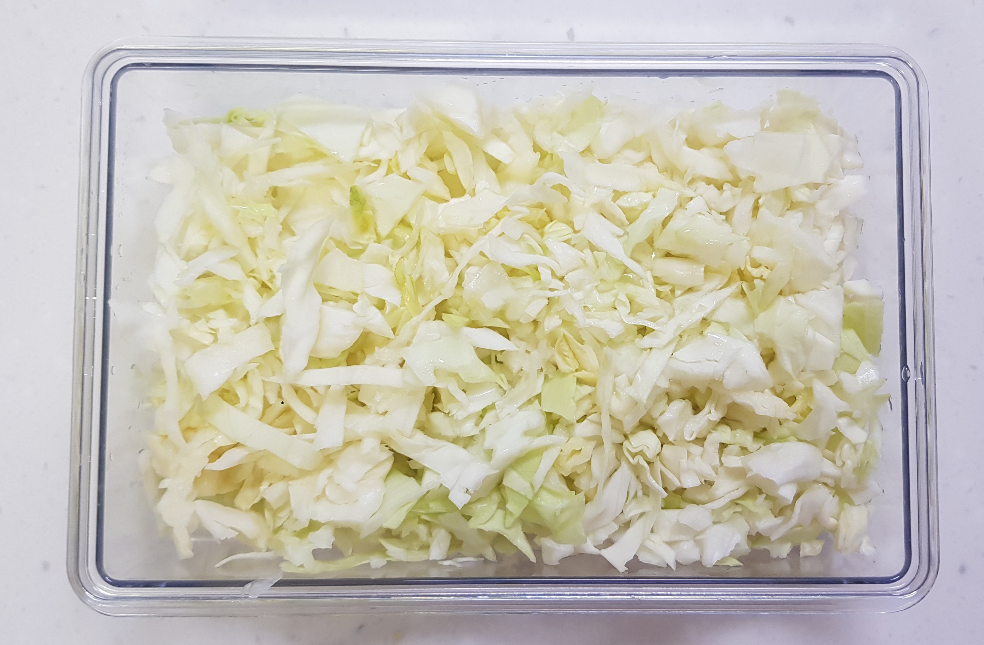 양배추 1/10조각을 채썰어 주세요.