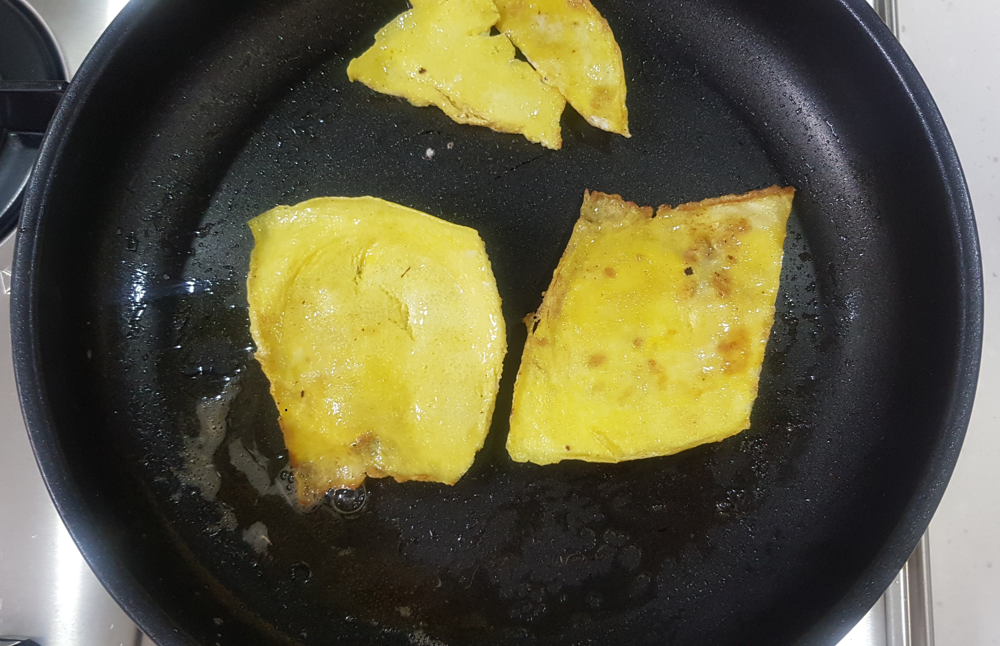 달걀은 적당히 네모지게 잘라가며 부쳐주고요.