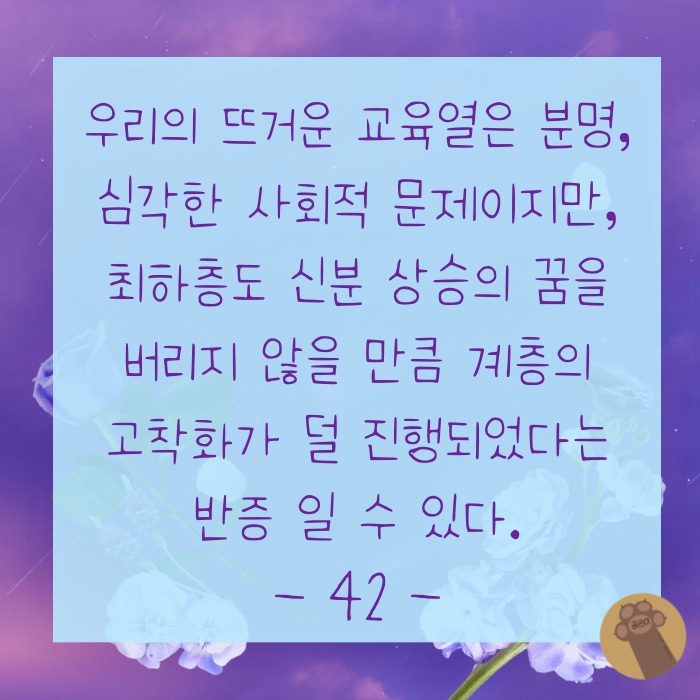 저도 지금과 달라질 게 없다고 생각하면 열심히 살아갈 의욕을 느끼지 못할 것 같아요.