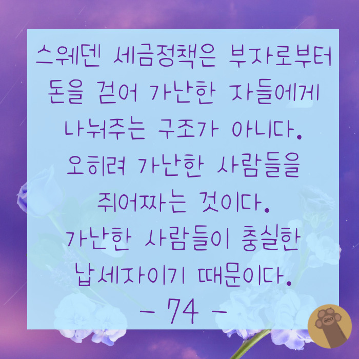 우리나라가 스웨덴과 같은 복지 강국을 꿈꾸고 있다면, 과연 이게 맞는지 근본부터 생각해 보게 하는 책이었습니다.