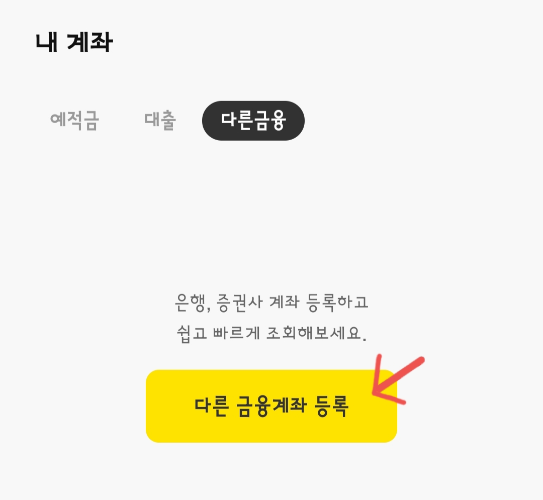 내 계좌 →다른 금융의 다른 금융계좌 등록을 누르고요.