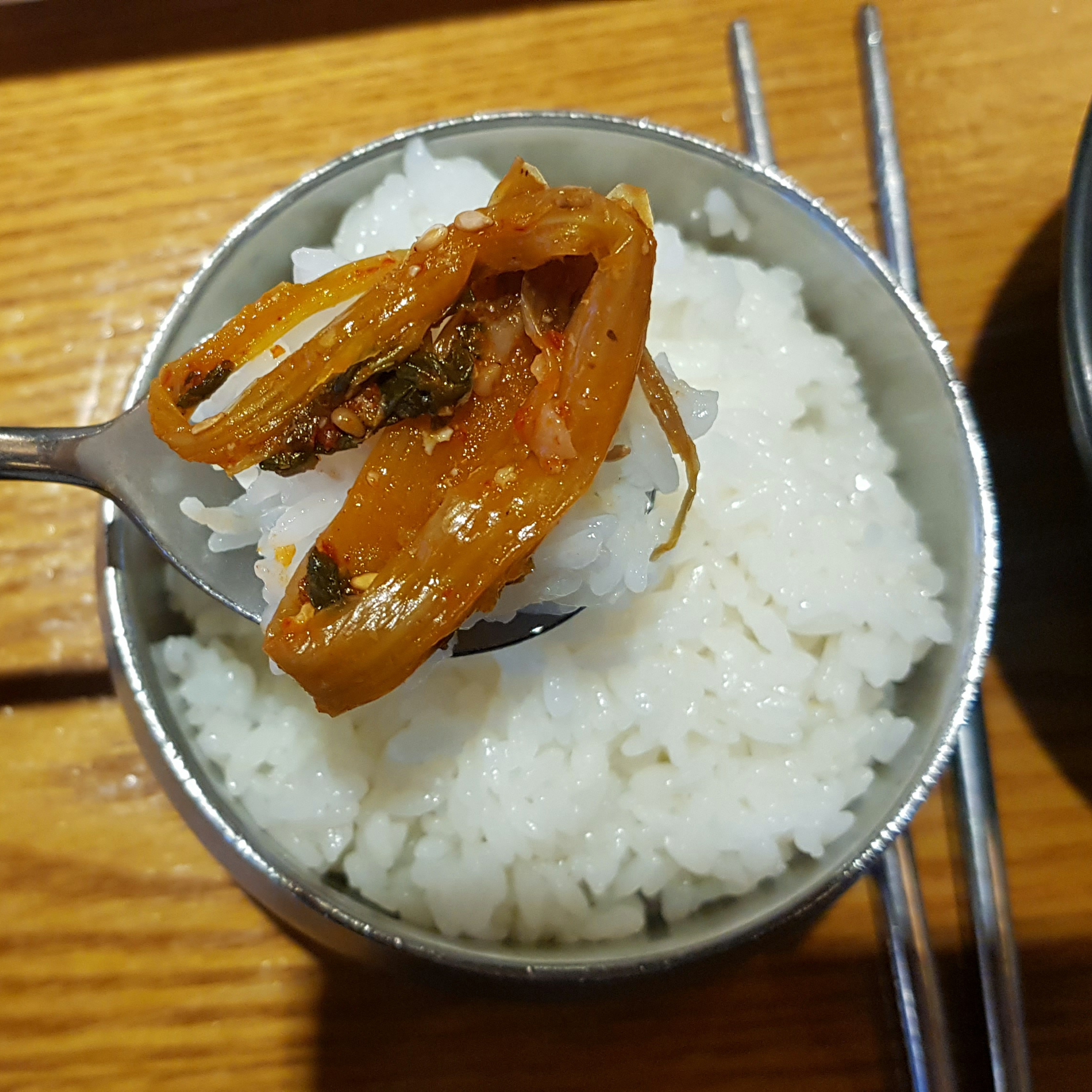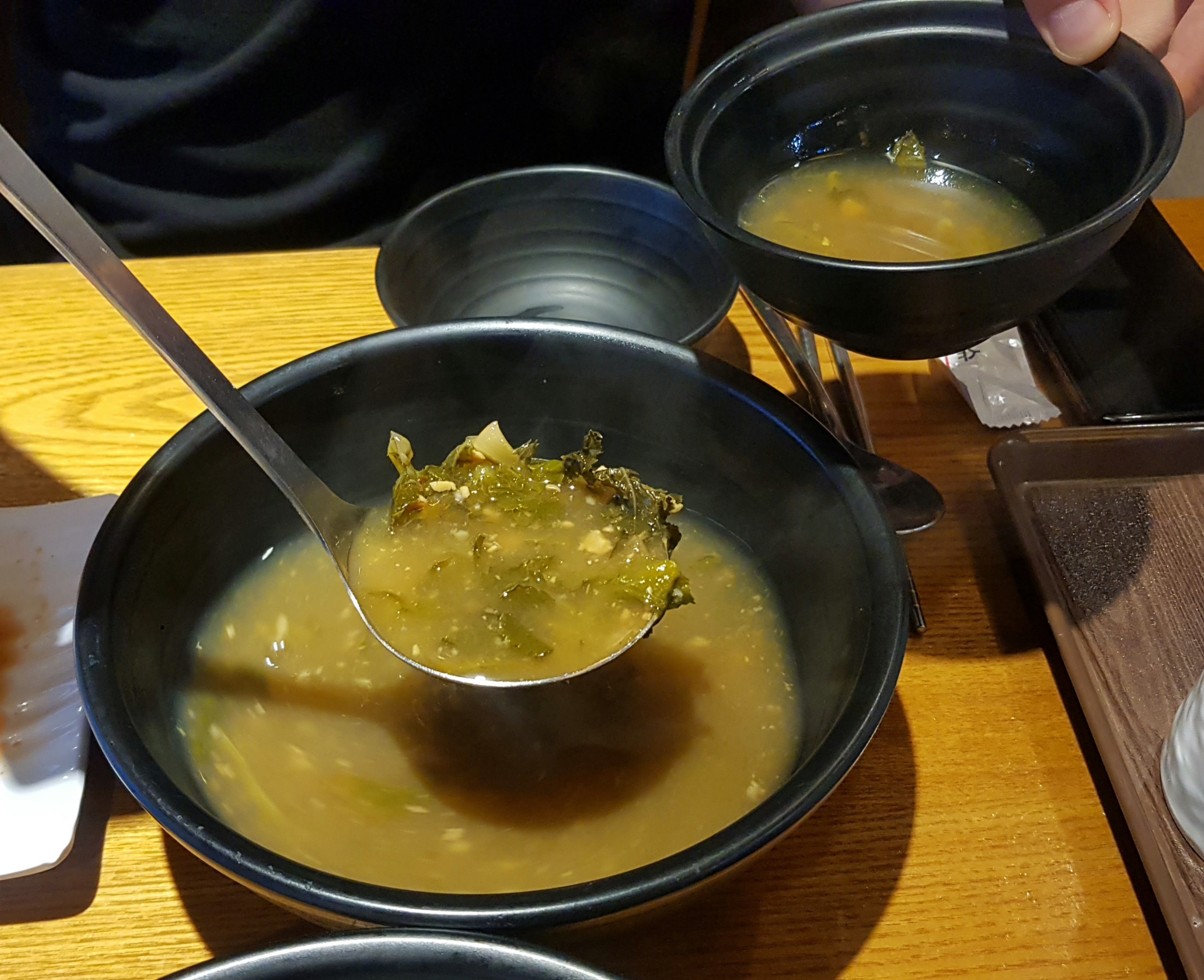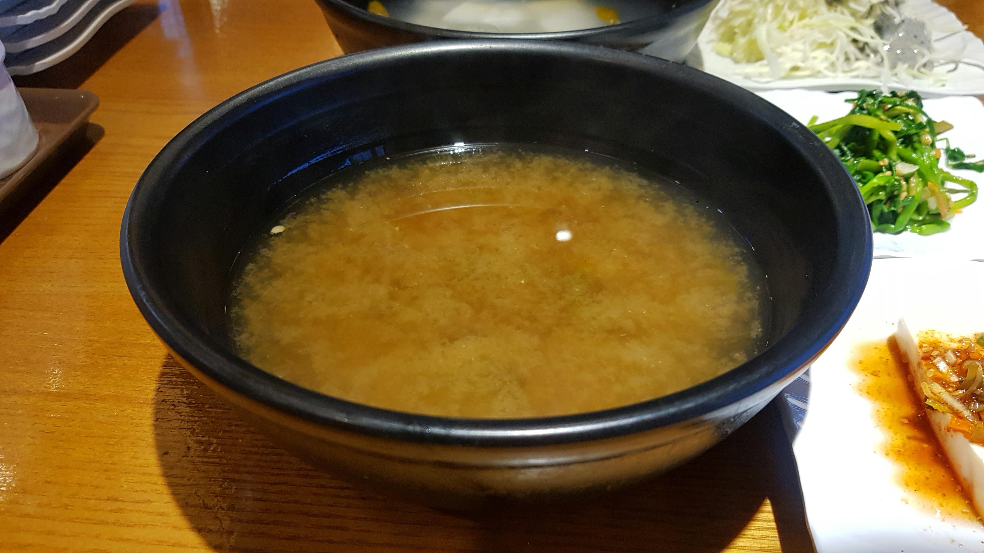 큼직한 그릇에 고소하고 진한 된장국이 나와서 작은 그릇에 나눠 담고,