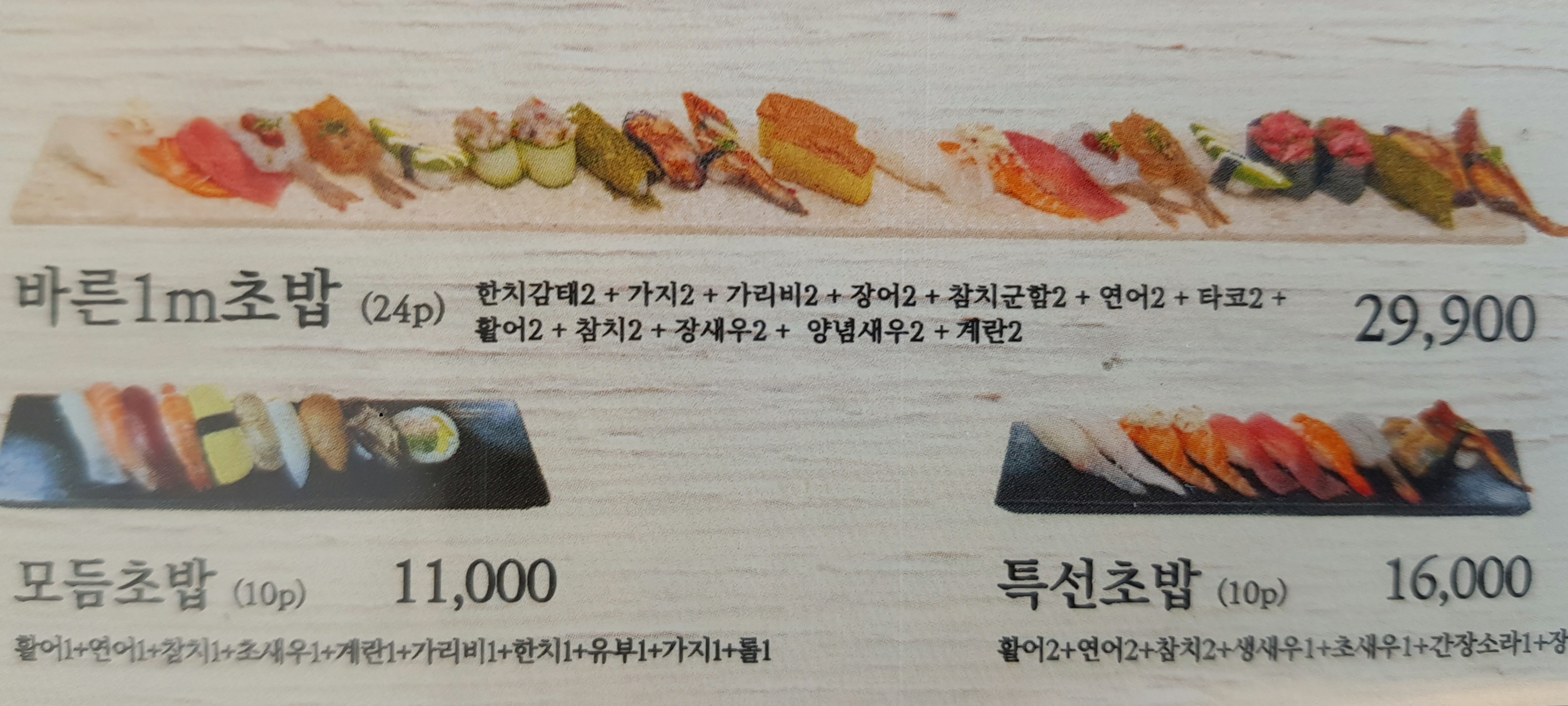 바른 1m 초밥은 가격이 29,900원이에요.