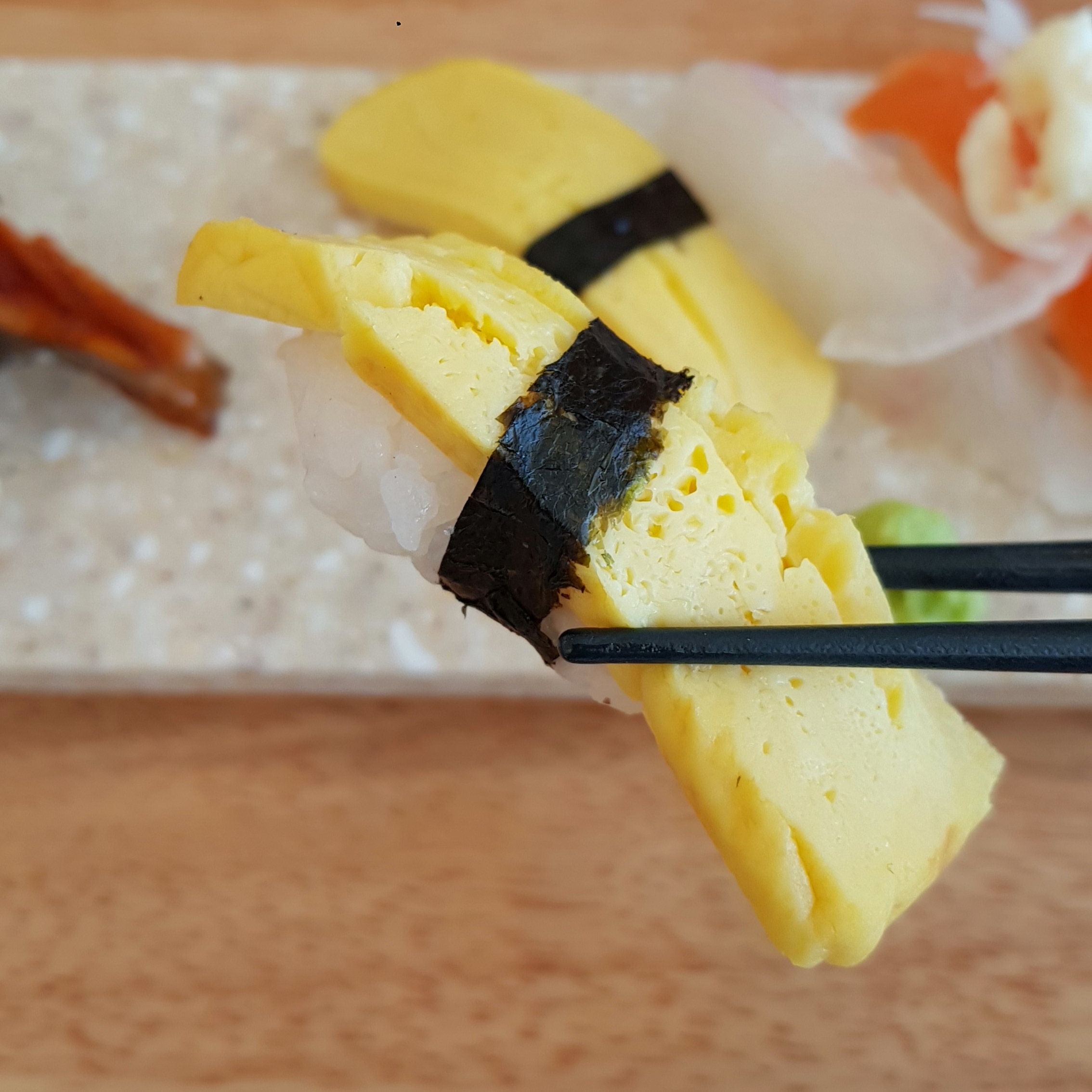 계란과 활어 초밥이에요.