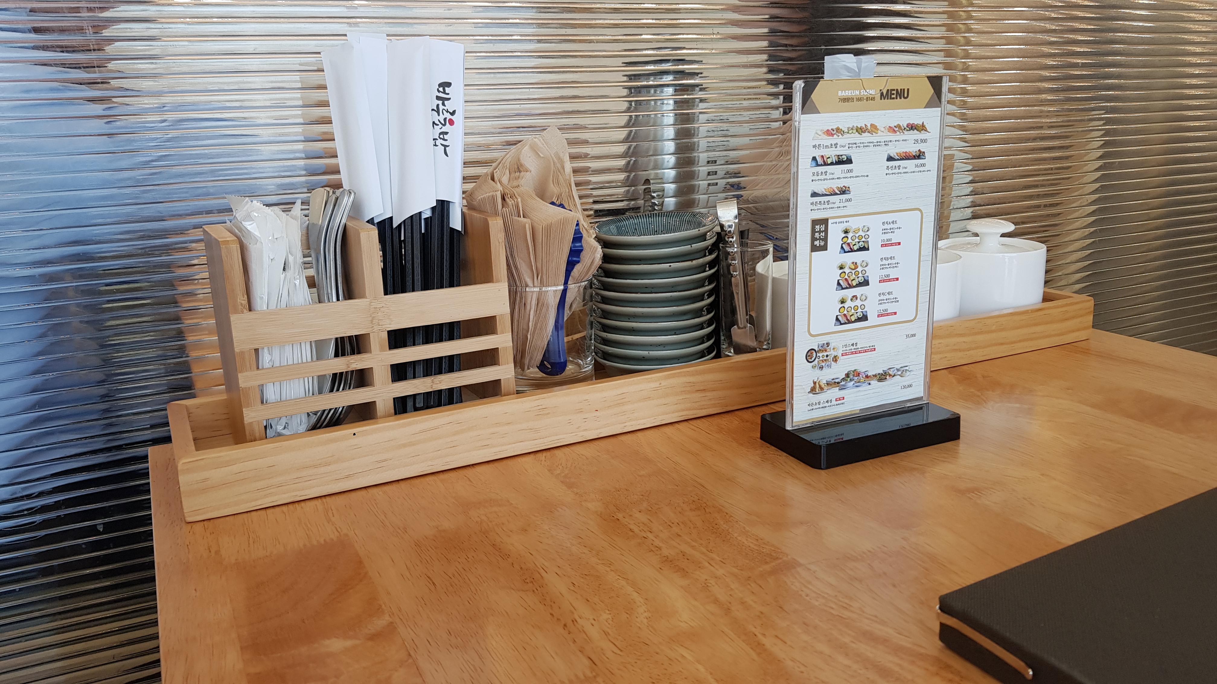 테이블에는 식기와 냅킨 등이 정갈하게 놓여있어요.