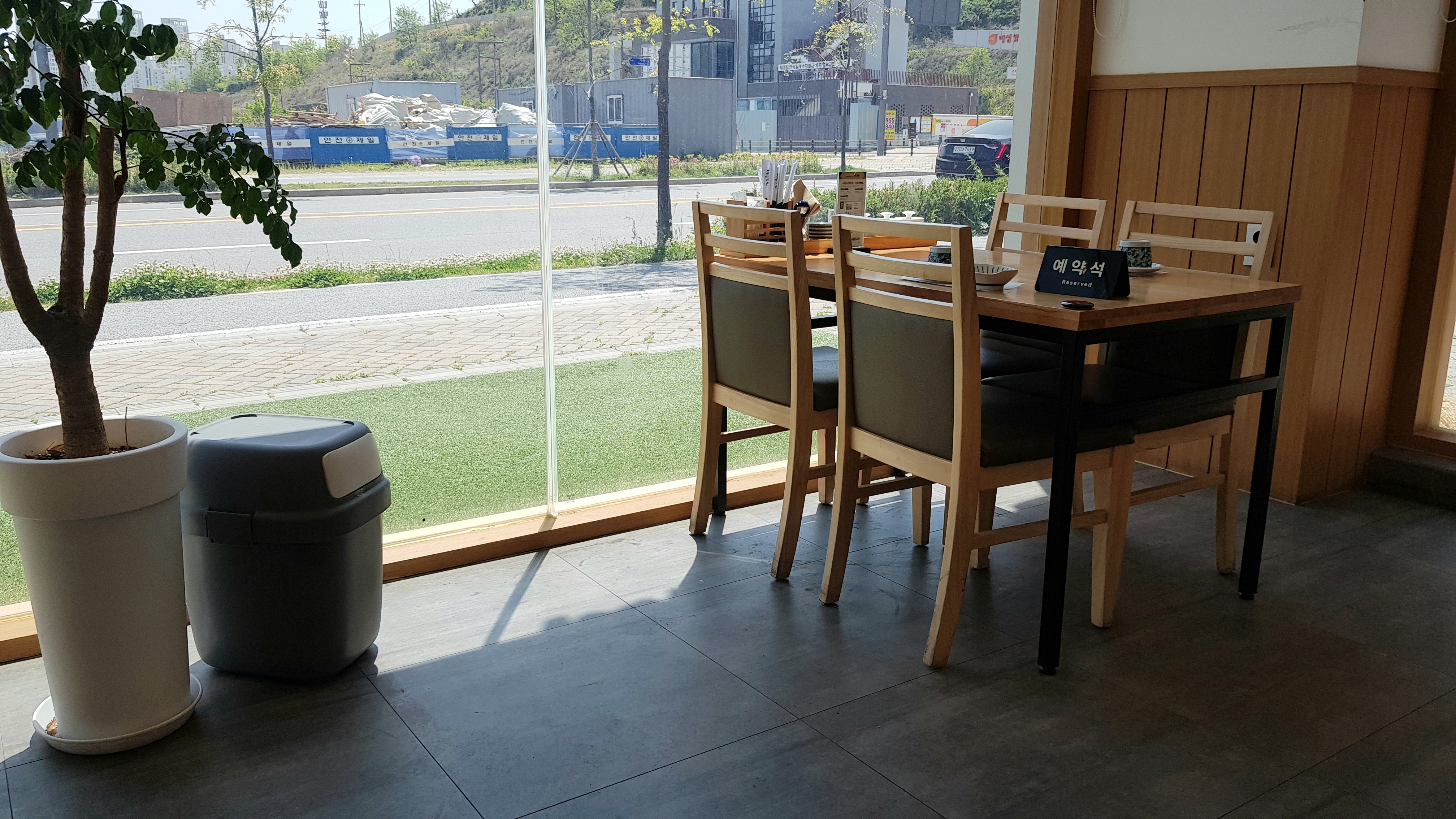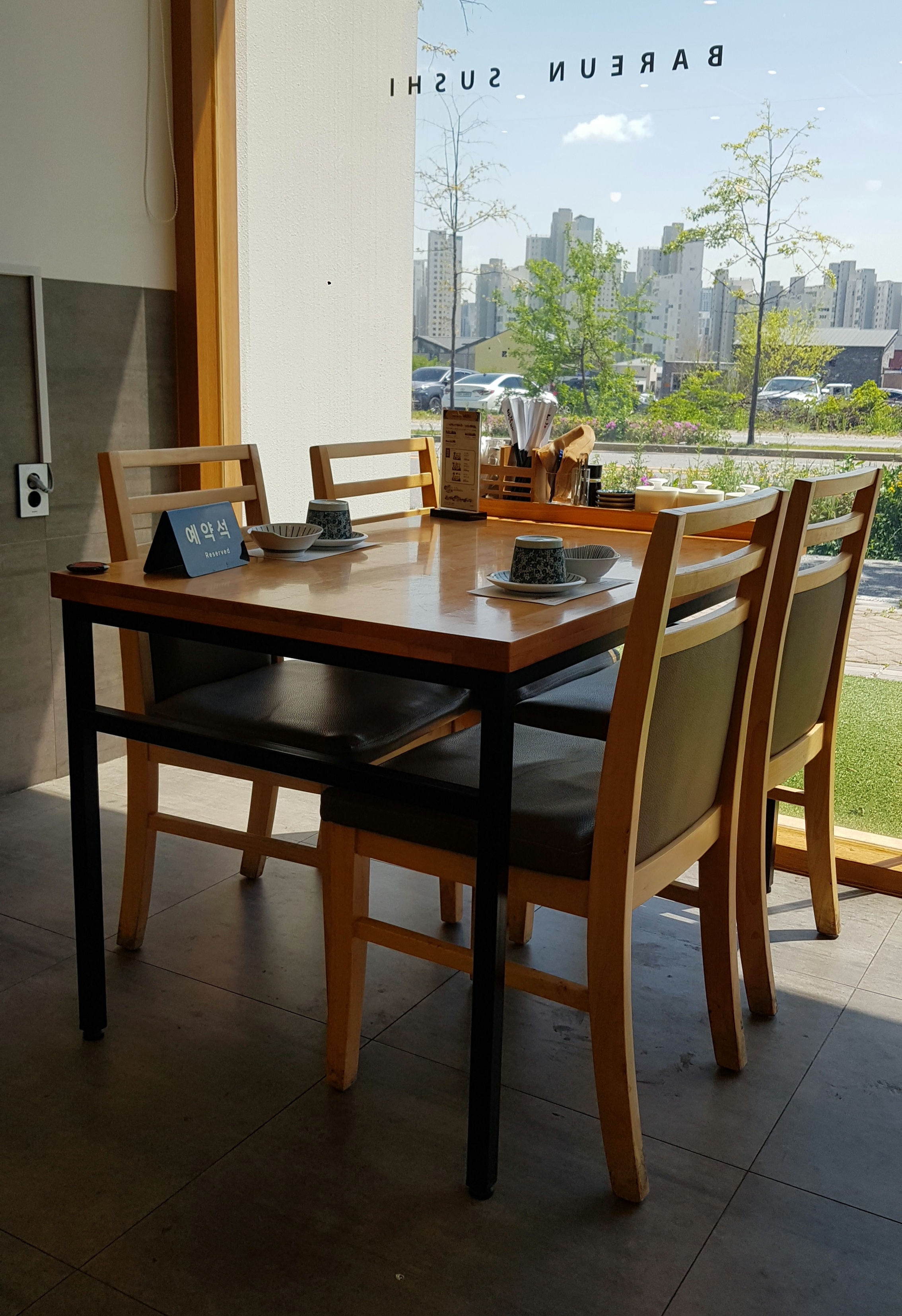 안으로 들어가면 주방이 바로 보이는 구조이고, 시원한 통창이 있는 창가 자리가 마음에 들었지만 이미 예약되어 있네요.