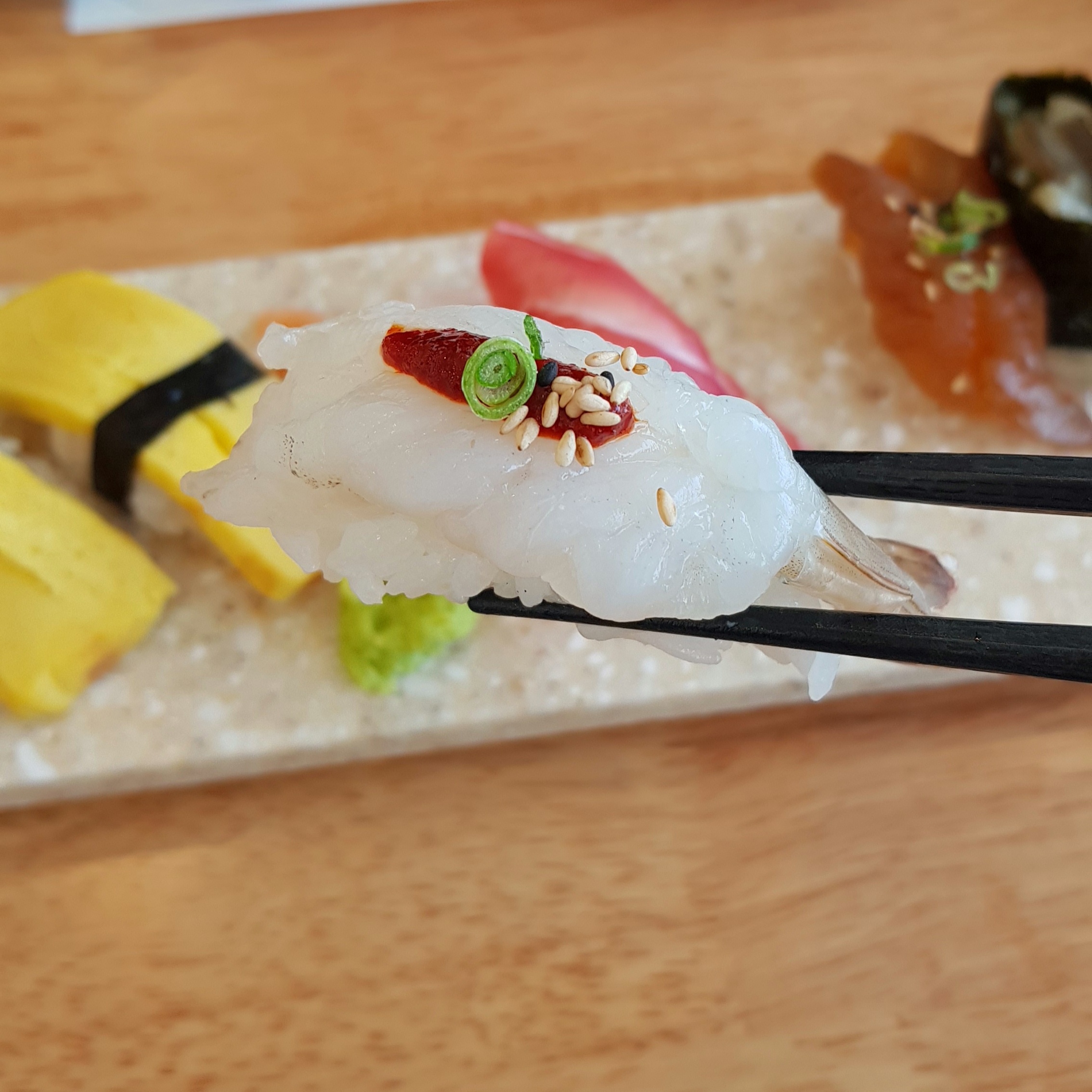 지금까지 경험해 보지 못한 색다른 비주얼의 초밥이었습니다.