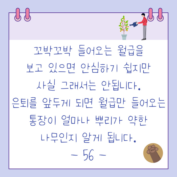 그러다 은퇴할 나이가 가까워지면 그때서야 걱정하기 시작하지만 그때는 너무 늦죠.