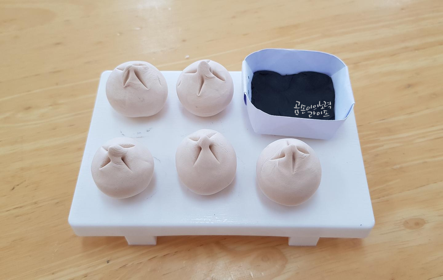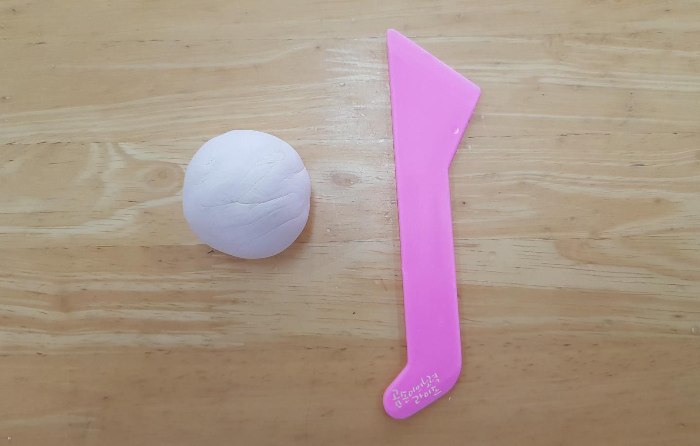 만두 색으로 만든 점토(흰색에 갈색과 주황색을 아주 조금 섞음), 점토놀이 도구