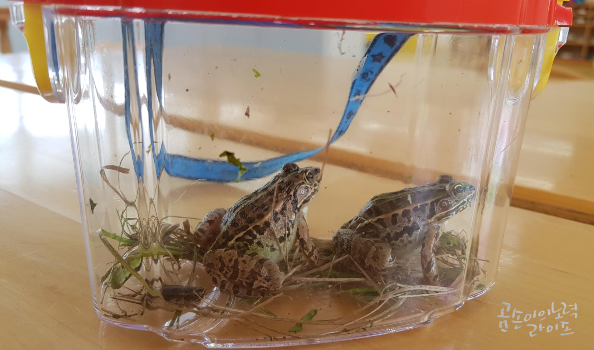 덕분에 개구리를 보며 신나게 개구리 뜀뛰기를 했답니다.