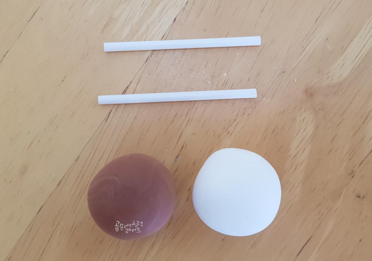 흰색과 갈색 점토를 적당한 크기로 나누어